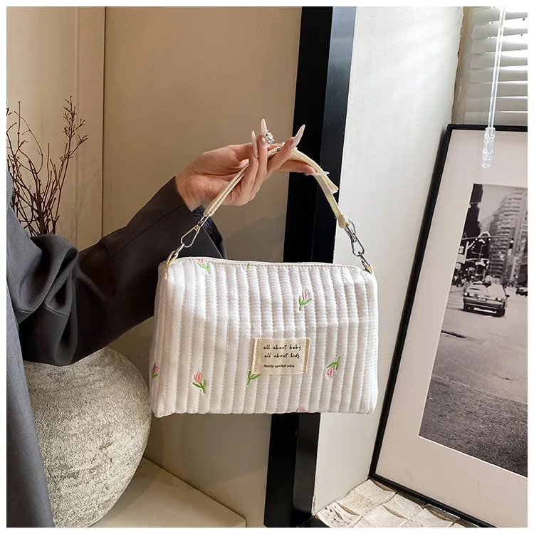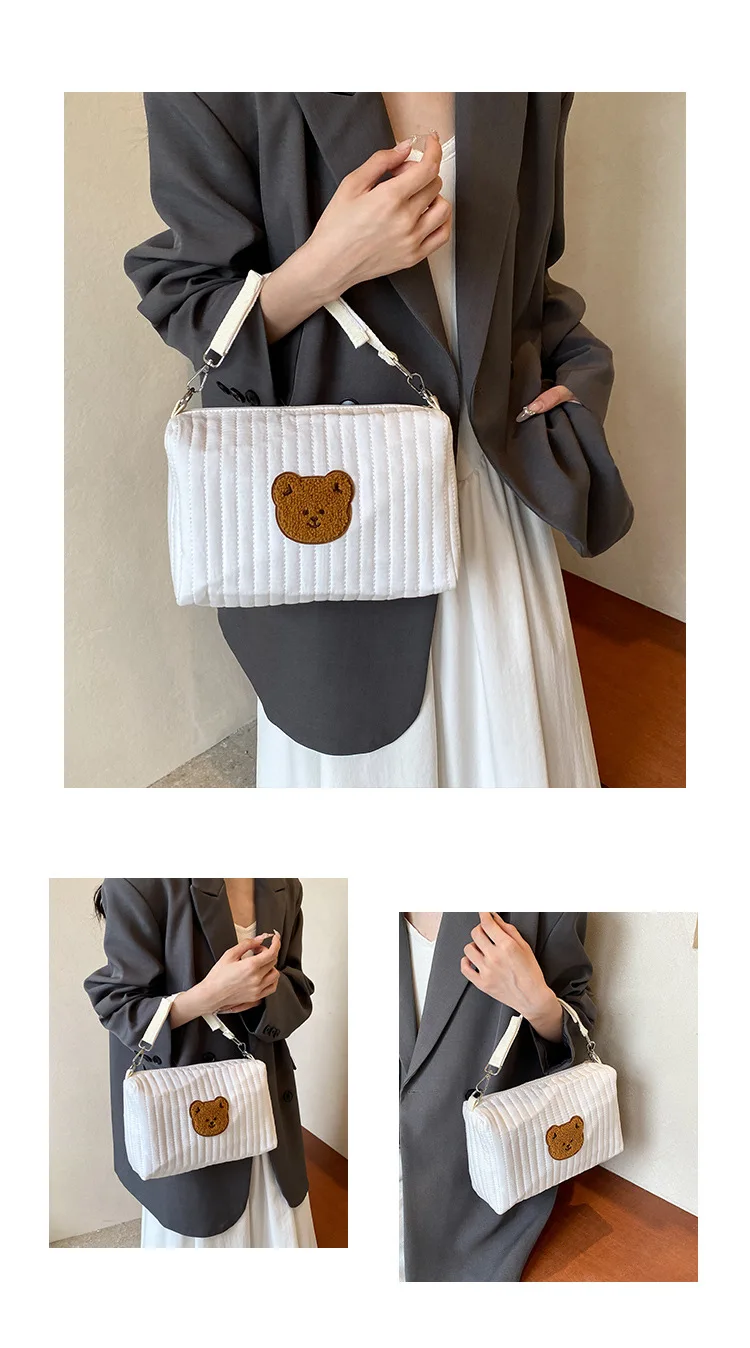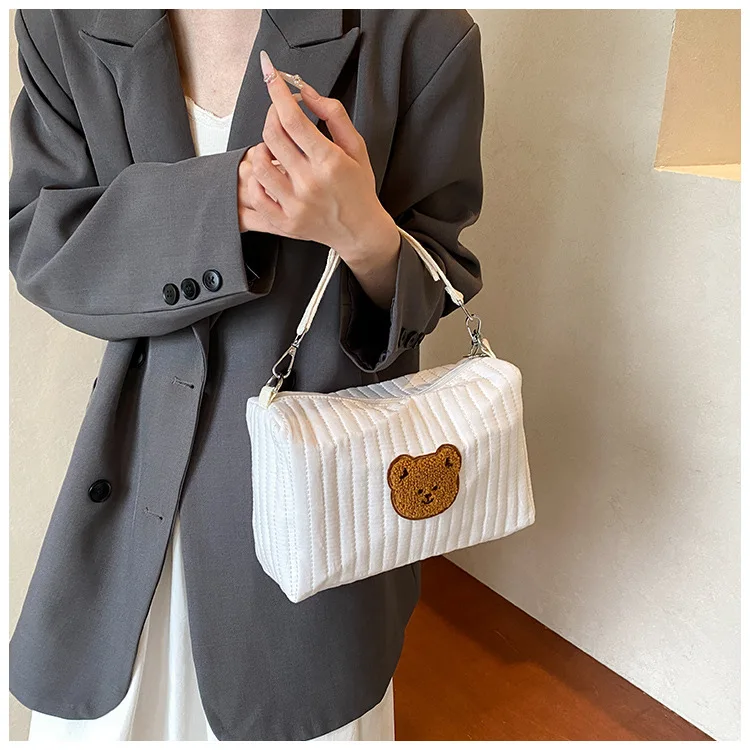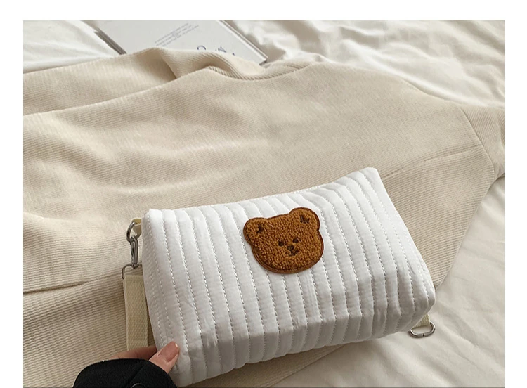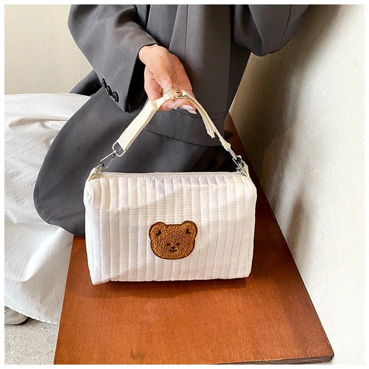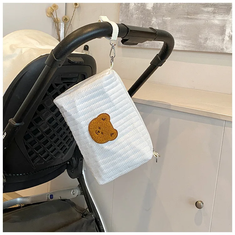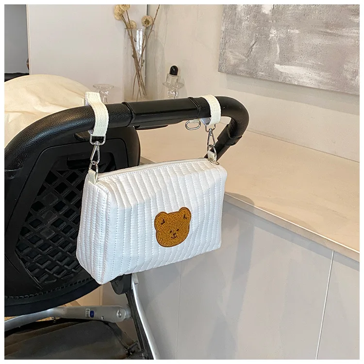 Mini bolsa de pañales para bebé de dibujos animados, bolso sencillo con bordado de oso para recién nacido, bolsa organizadora portátil para cochecito de bebé al aire libre