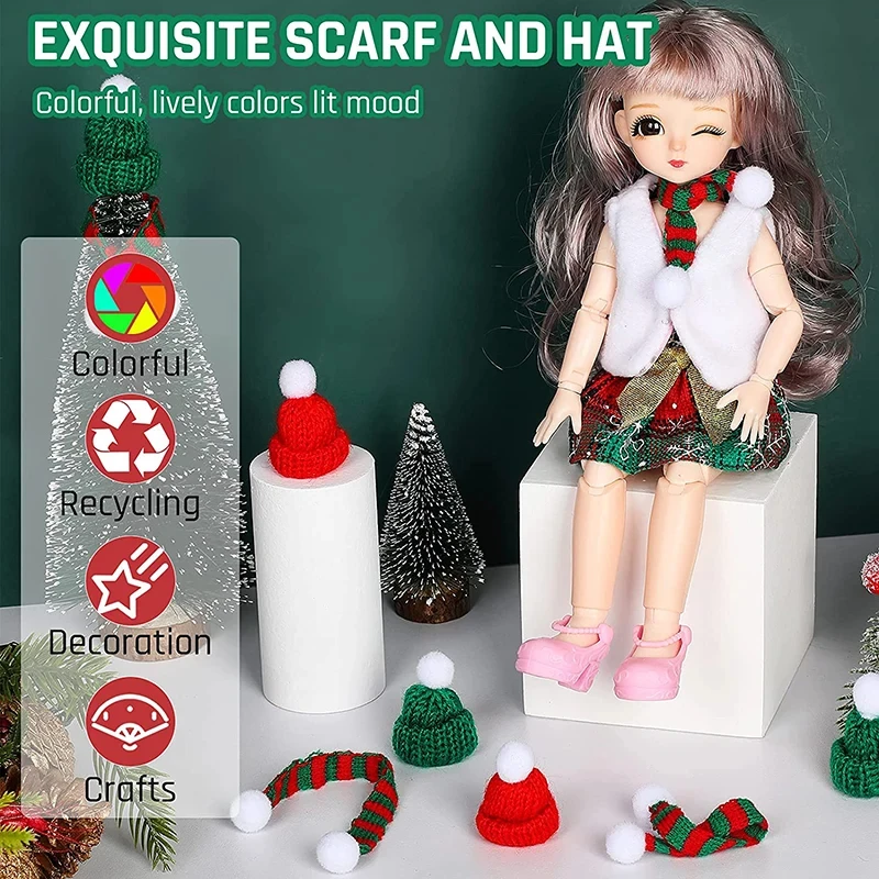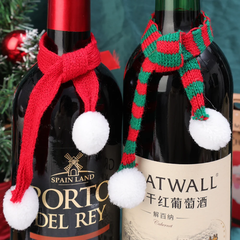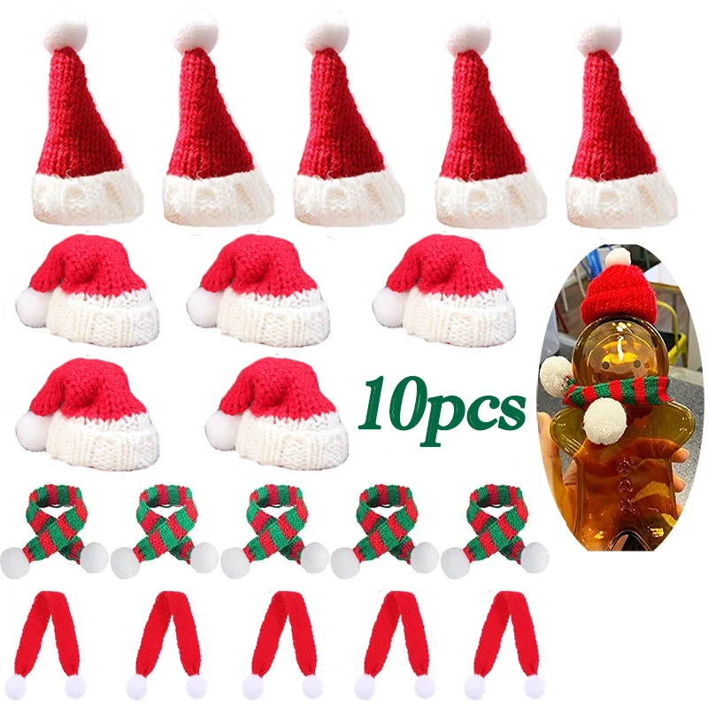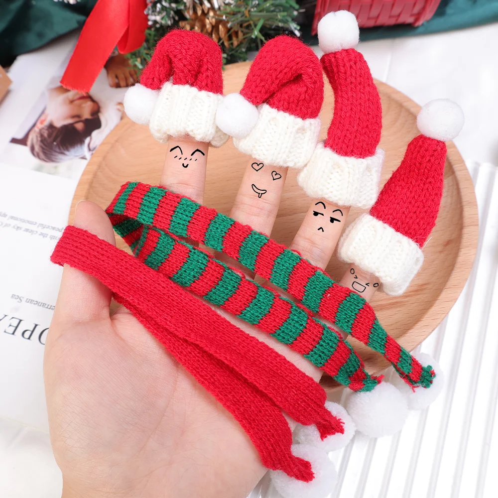Mini bufandas de sombrero de lana de dedo de Navidad, accesorios de embalaje de muñeca DIY, decoración de botella de vino, accesorios de escena de actividad, 1-10 piezas