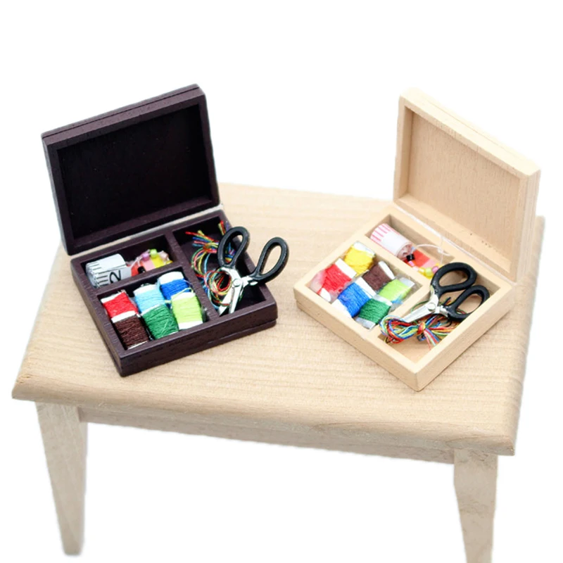 Comprar Mini caja de pintura de casa de muñecas, caja de costura, modelo en miniatura, adornos, accesorios, adornos