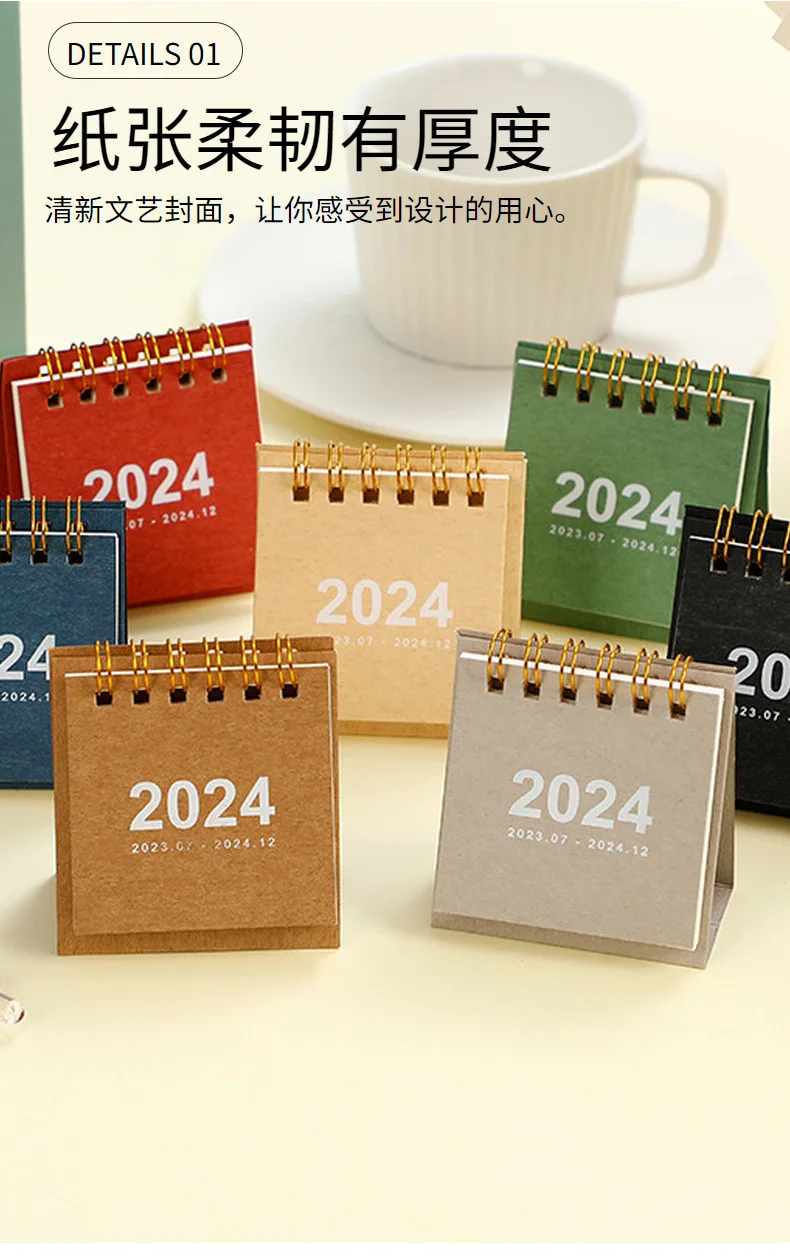 Mini Calendario de papel de escritorio Simple, planificador diario Dual, planificador de mesa, Agenda anual, organizador de escritorio, Color sólido, 2024