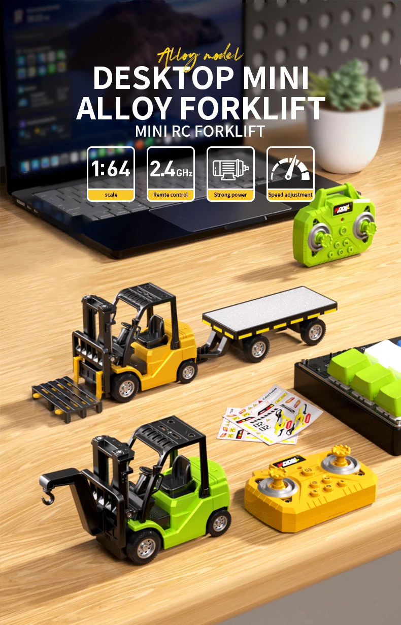 Comprar Mini camión elevador a control remoto, aleación 1/64 fundida a presión con remolque, coches de escritorio con Control remoto para niños, camión eléctrico elevable para regalo de chico