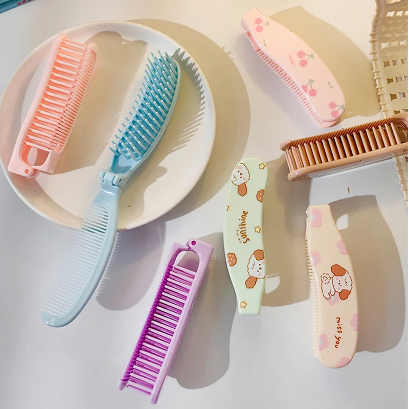 Comprar Mini cepillo antitornillo portátil para niñas, herramientas de cuidado de maquillaje, cepillo de pelo de masaje plegable con estampado de dibujos animados lindos, gimnasio de actividades