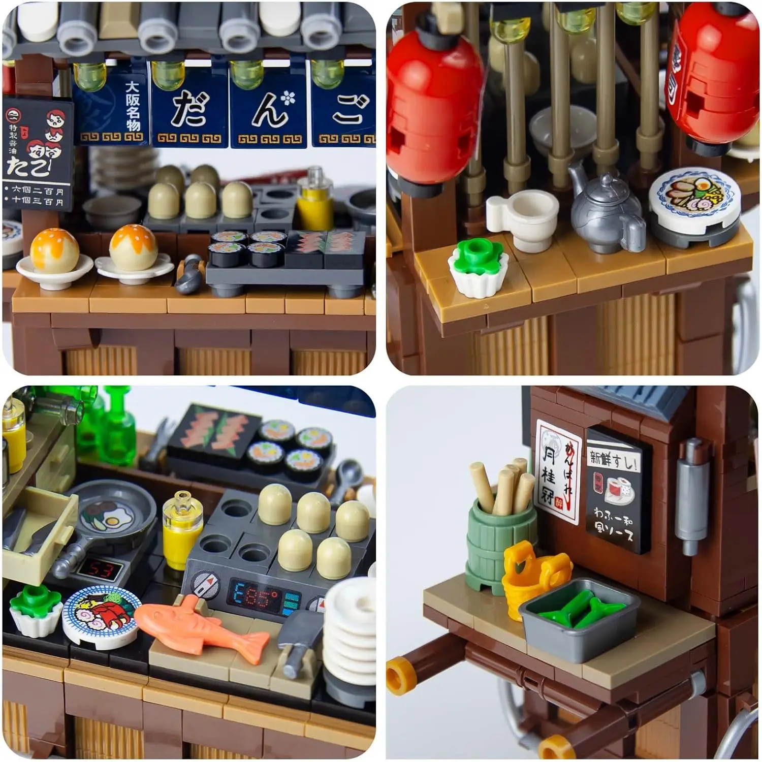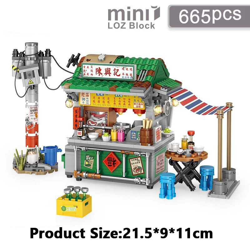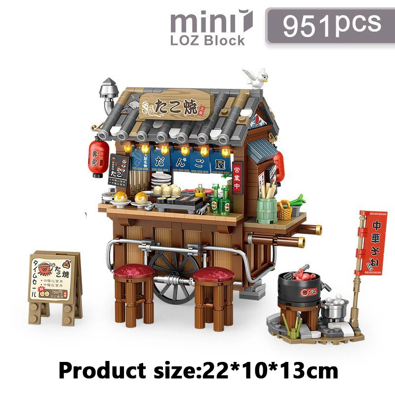 Mini ciudad vista de calle arquitectónico paisaje modelo bloques de construcción Takoyaki tienda puesto de comida restaurante juguetes Navidad niños regalo