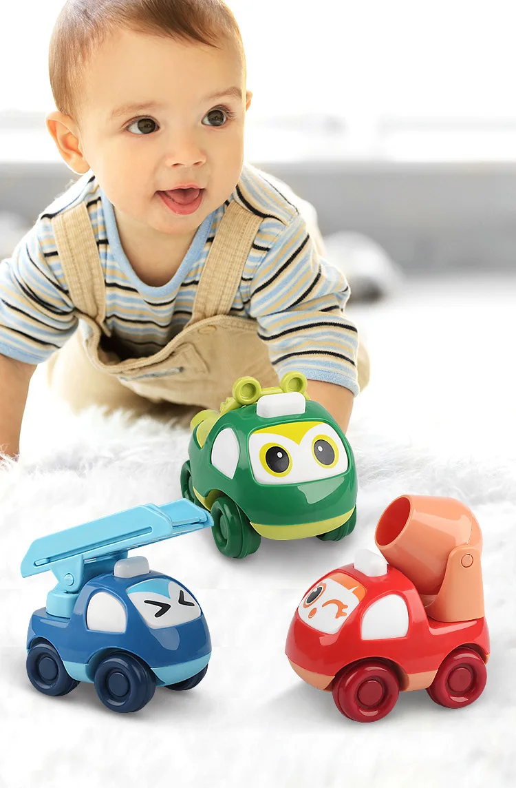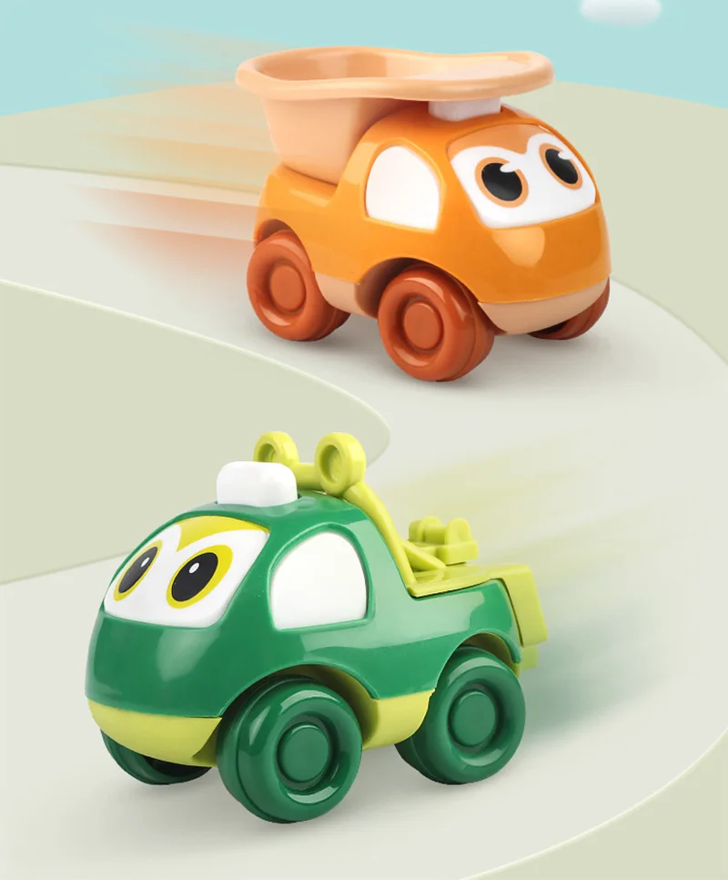 Comprar Mini coches de dibujos animados para niños y niñas, versión Q, lindo y divertido vehículo de ingeniería de inercia, camión para bebé, regalo, 4 piezas por juego