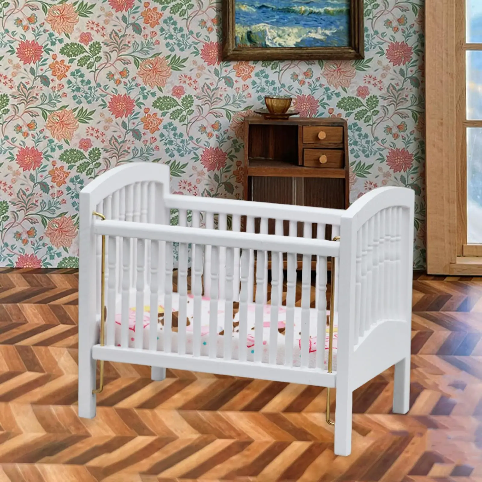 1 1:12 casa de muñecas miniatura cuna con colchón