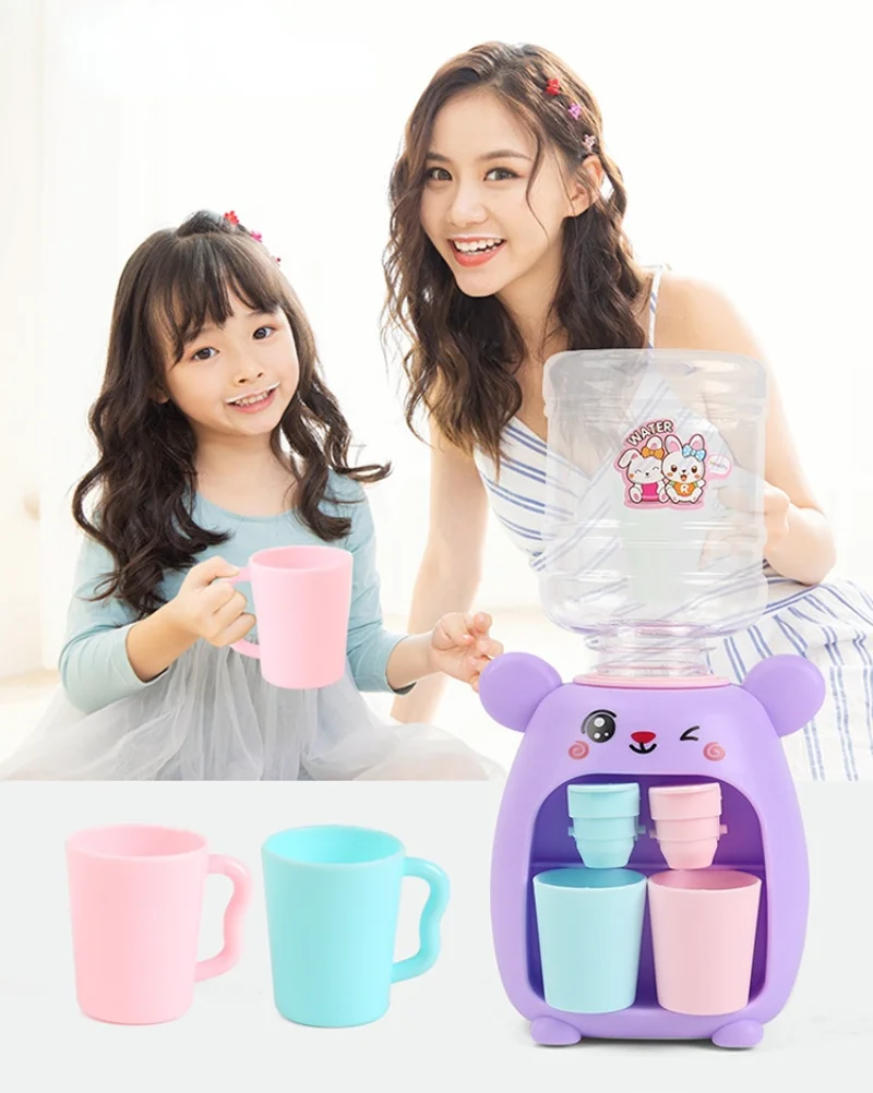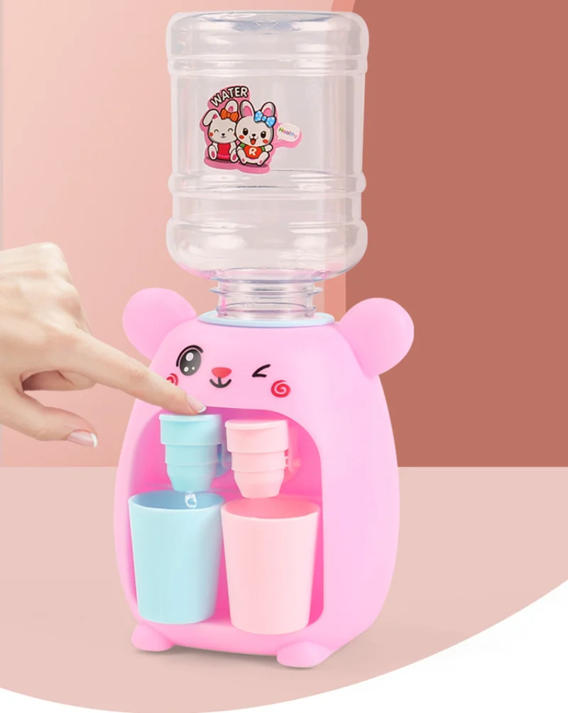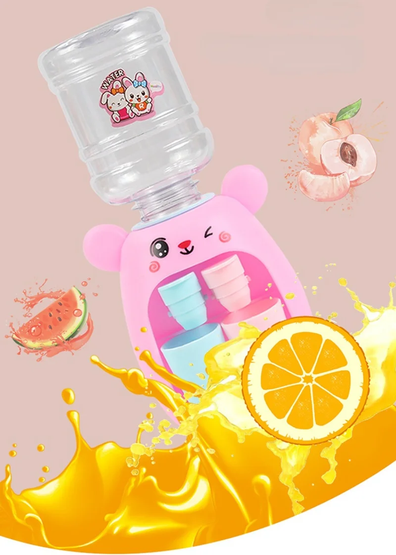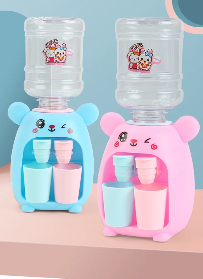 Mini dispensador de agua doble para niños, juguete con taza bonita, regalo para niños, agua, jugo, leche, bebida, simulación, cerdo de dibujos animados, juguete de cocina