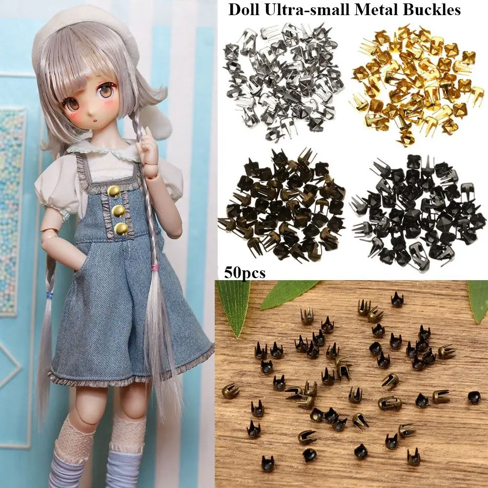 50Pcs 3mm Mini Buckle Round Bead Claw Hammer Ultra-small Metal Buckles Stuffed Toys DIY Doll Clothes Doll Accessories