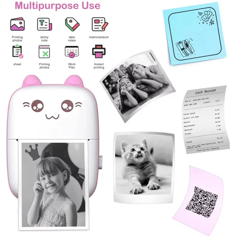? ?¿Impresora multifuncional mejorada? ?- Esta mini impresora mejorada es versátil y admite la impresión de códigos QR, álbumes de recortes, diarios, etiquetas de almacenamiento, listas, notas, preguntas incorrectas, impresión de fotografías y impresión web. Adecuado para oficinas, estudiantes, niños, familias, amantes de las etiquetas y también es un buen regalo para niños, estudiantes, familias y amigos.