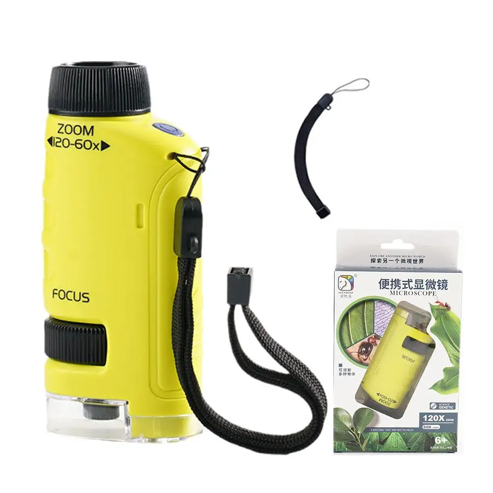 Comprar Mini Kit de microscopio de bolsillo 60-120x, microscopio de mano de laboratorio, alimentado por batería, con luz LED, juguete de experimento científico para niños