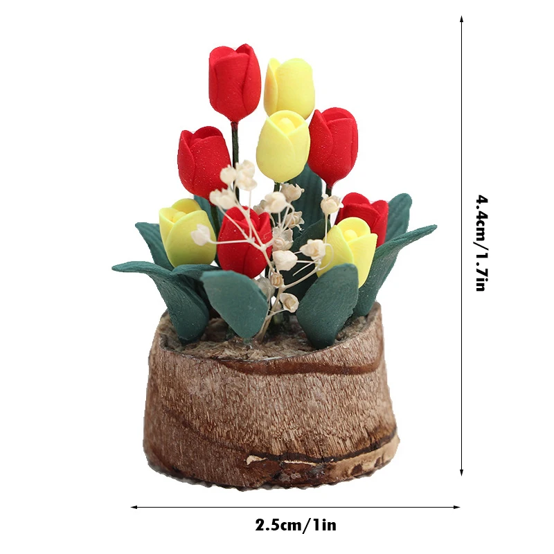 Comprar Mini maceta de simulación para casa de muñecas, modelo de tulipanes de flores y plantas verdes, muebles para decoración del hogar, gran oferta