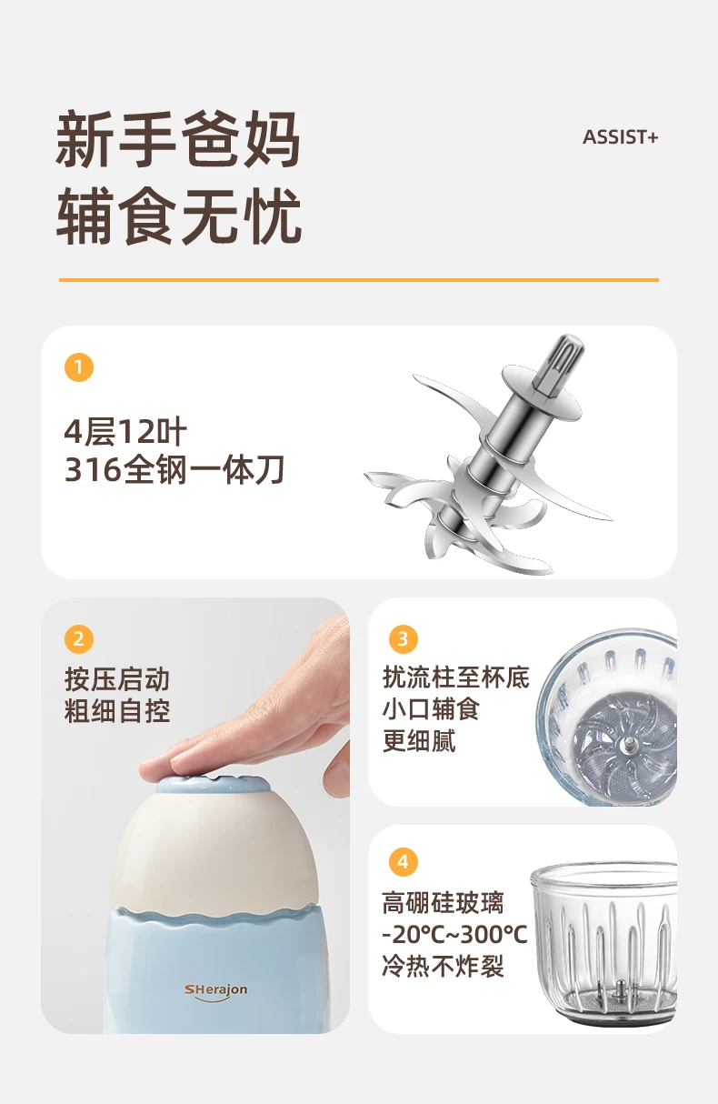 Mini máquina para hacer alimentos para bebés, licuadora trituradora multifuncional, cortador de 12 hojas de calidad alimentaria, capacidad compacta de 0,3 L, portátil de fácil limpieza