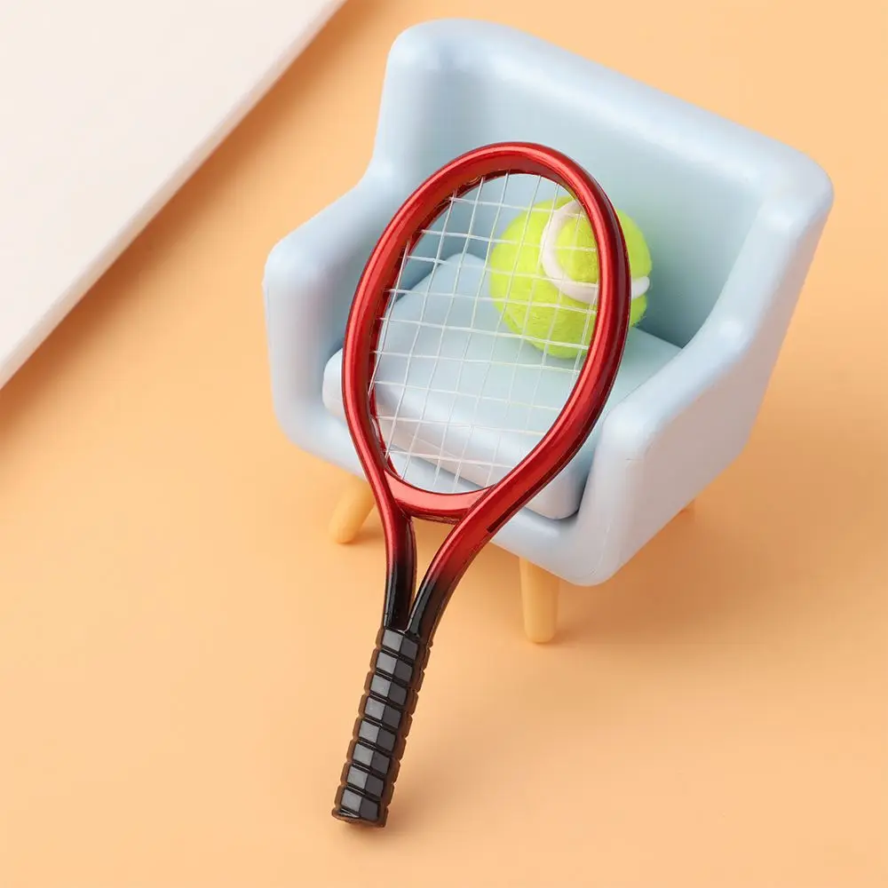 Mini raqueta de tenis en miniatura para niños, accesorios de casa de muñecas para jardín, 1/6, 1/12