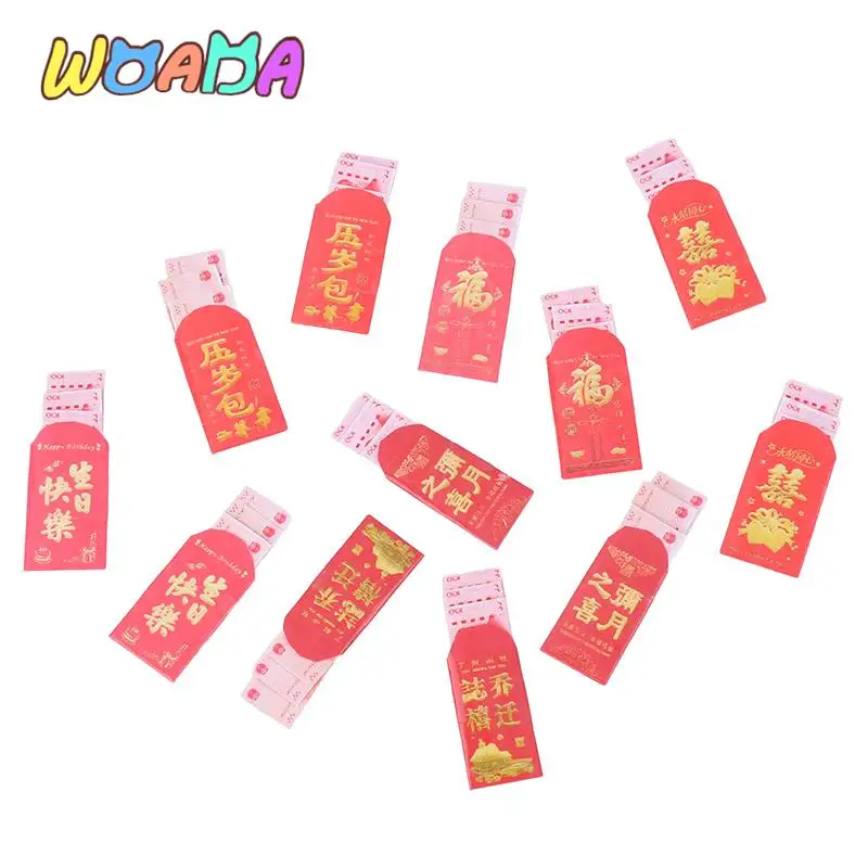 Paquete: 1 paquete aleatorio + 10 sobres rojos de casa de muñecas dinero de la suerte