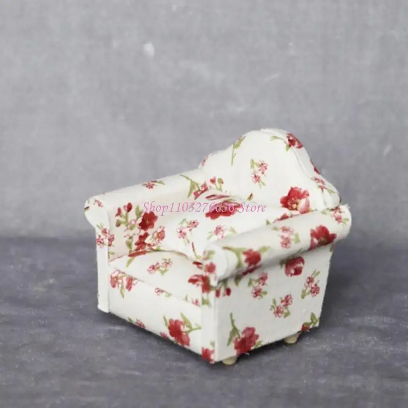 Sofá de juguete con sillón en miniatura realista: sofá en miniatura de diseño floral rural, restauró el sofá real con una almohada suave, escala 1:12 que lo hace realista y adecuado para la decoración de casas de muñecas a escala 1:6 1:12.