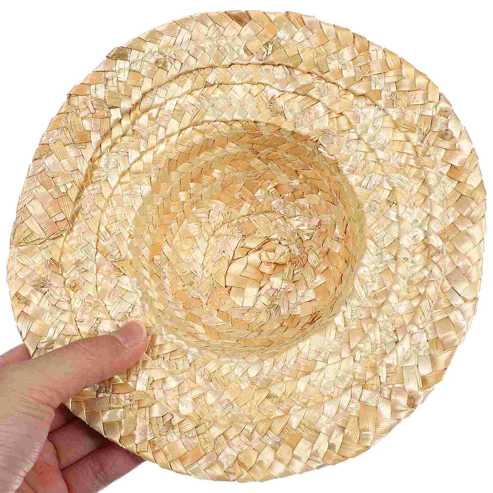 Comprar Mini sombrero tejido a mano, gorros de paja trenzados para bebé, adorno para mascotas, modelo de sombreros encantadores, 2 uds.