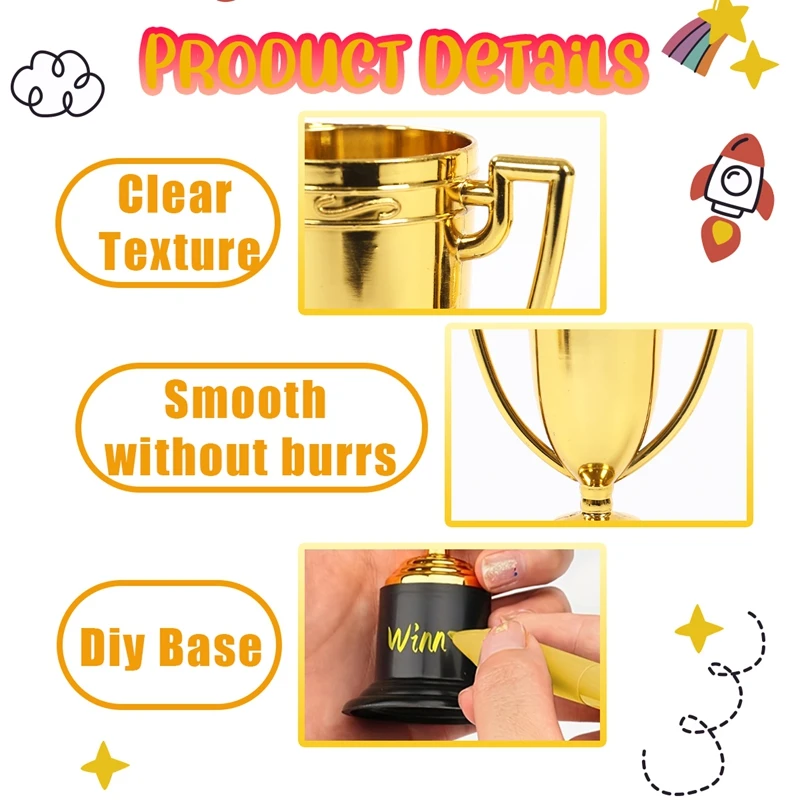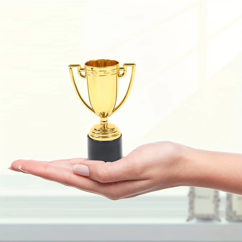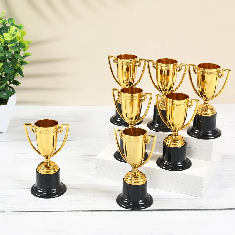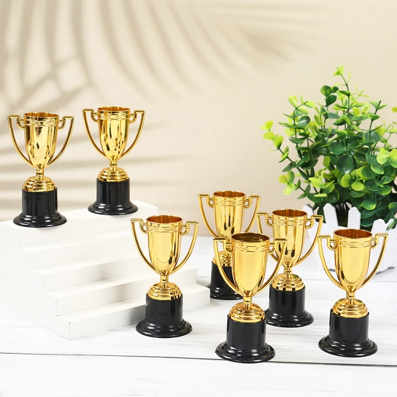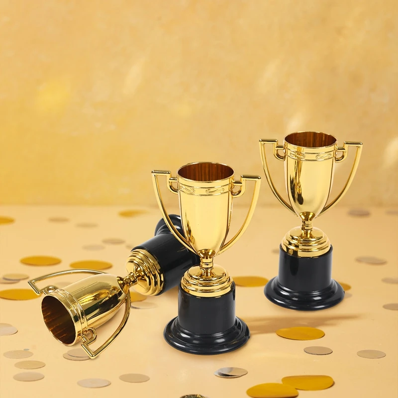 Mini taza de recompensa dorada de plástico, medallas, taza de premio, juguetes educativos para edades tempranas, regalos de fútbol, trofeos pequeños exquisitos de escuela secundaria, 12 Uds.
