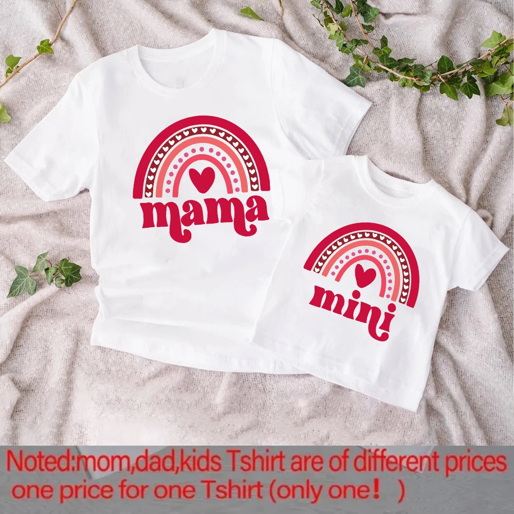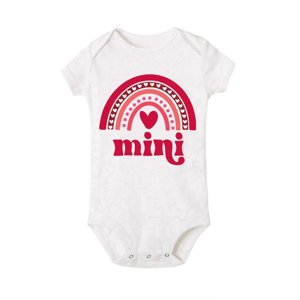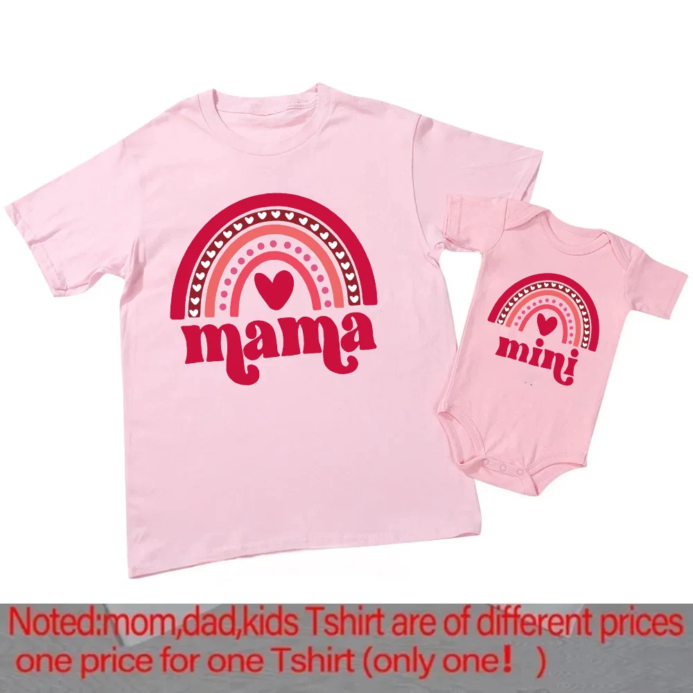 Mom Mini traje familiar con estampado de arcoíris, ropa a juego para mamá y bebé de San Valentín, camisetas para mamá, Tops, mameluco para bebé, mono, camisas navideñas