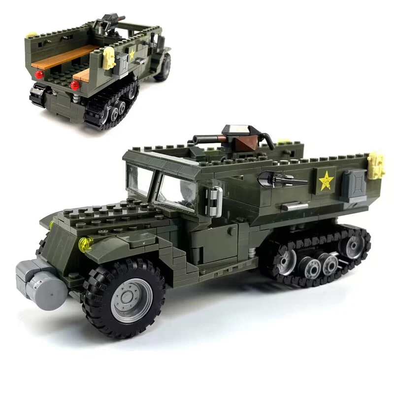 Comprar MOC-bloques de construcción de la segunda guerra mundial para niños, vehículo blindado de media pista, modelo militar, ensamblaje de ladrillos, juguete, regalo de cumpleaños