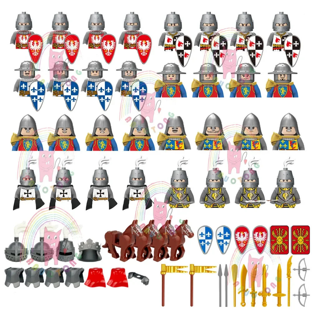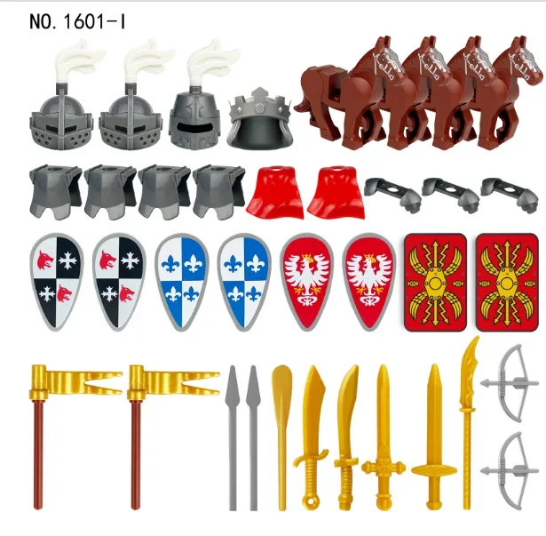 MOC Medieval Militar War Knight Soldado Armas Casco Escudo Bloques de construcción Compatible DIY Modelo Bricks Regalos de juguete para niños