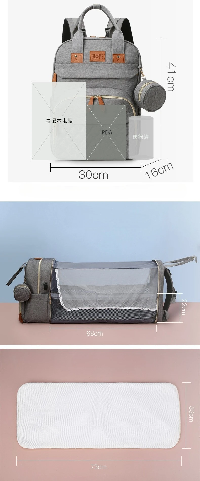Mochila Convertible a cama de bebé portátil, bolsa de pañales Premium para mamás, Moisés de viaje 2 en 1, bolsa Stoller informal de gran capacidad