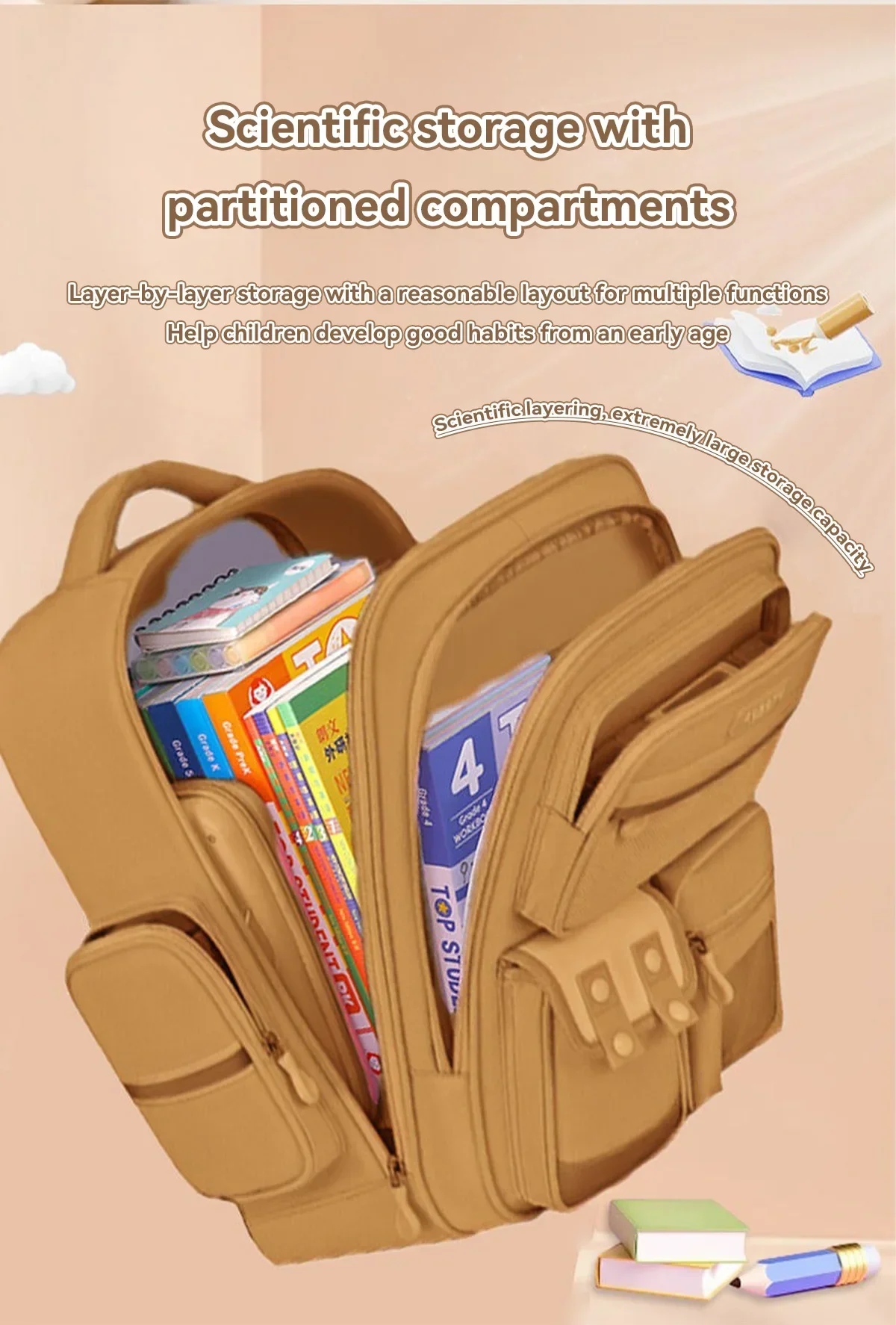 2.Almacenamiento espacioso y organizado: Con una gran capacidad con múltiples compartimentos, esta mochila ofrece un amplio espacio para todos sus elementos esenciales y mantiene todo perfectamente organizado y fácilmente accesible.