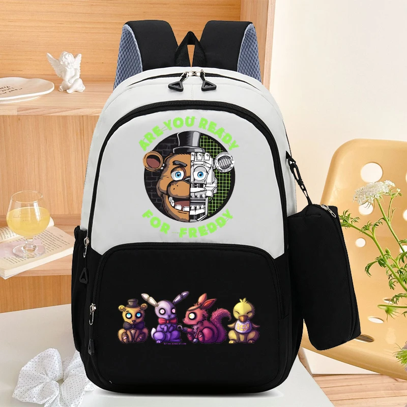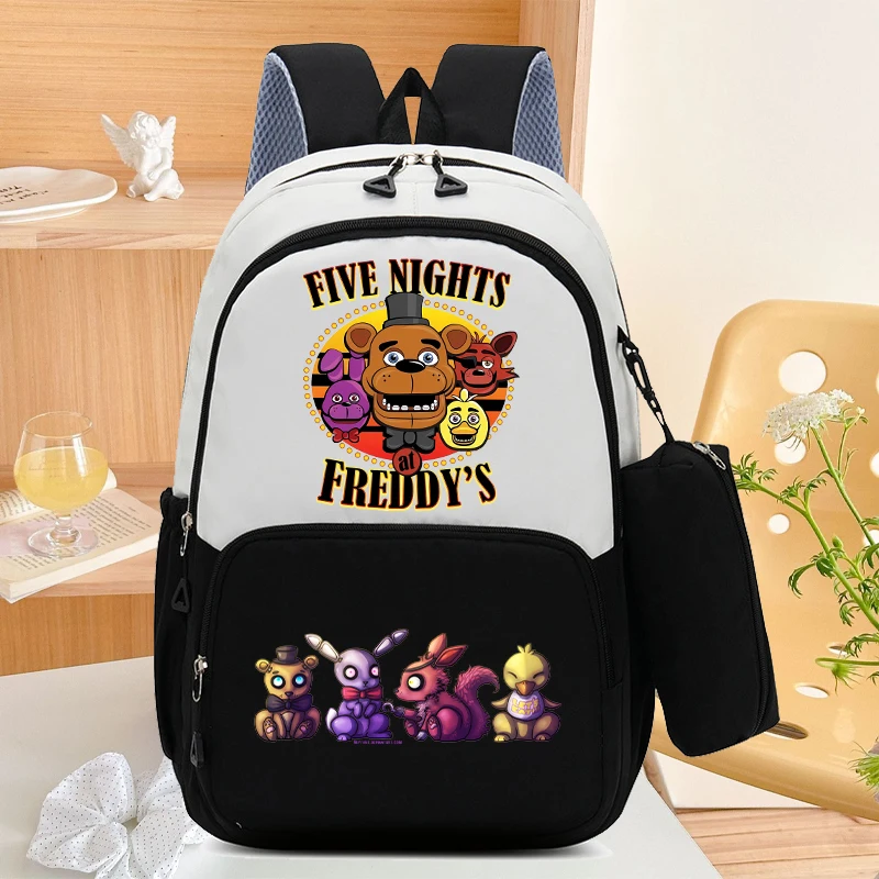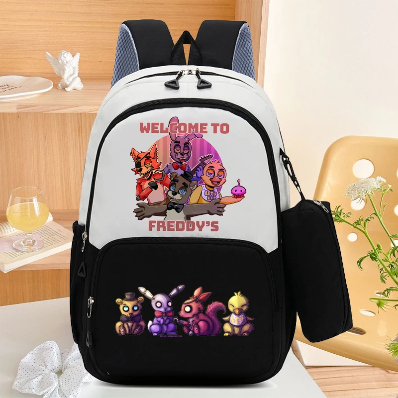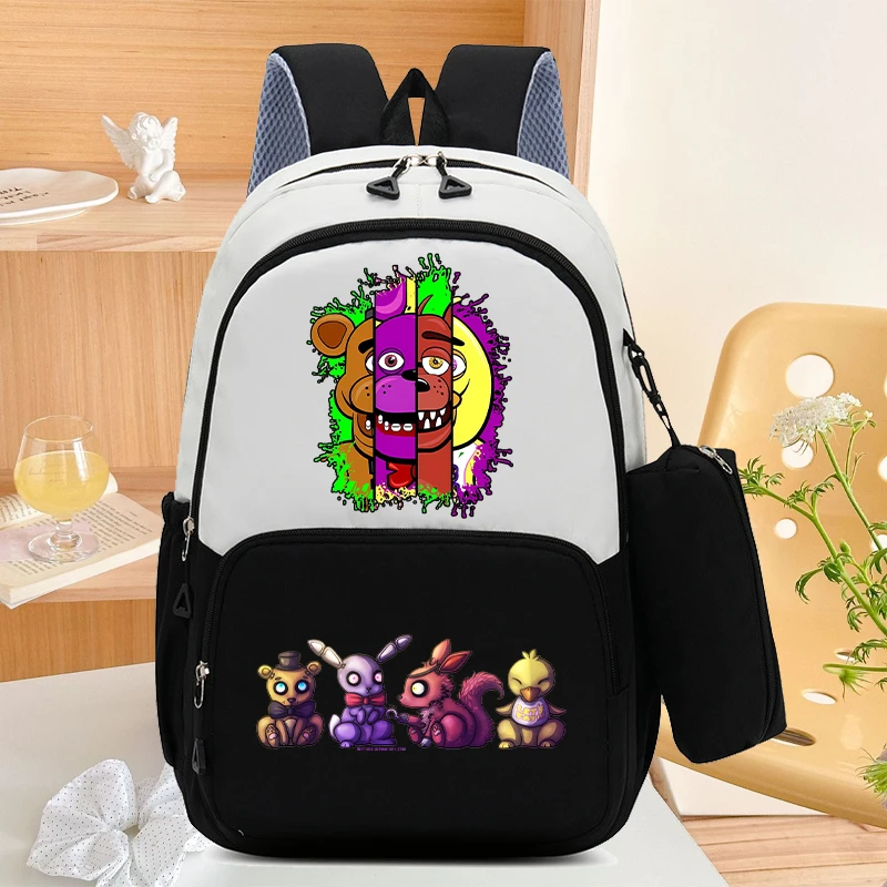 Mochila escolar FNAF de gran capacidad con bolsa para lápices, mochila de dibujos animados de cinco noches en Freddy, bolsas de almacenamiento de papelería para libros para estudiantes, 2 uds.