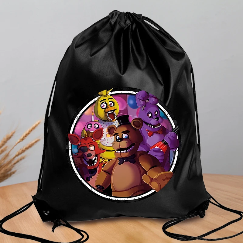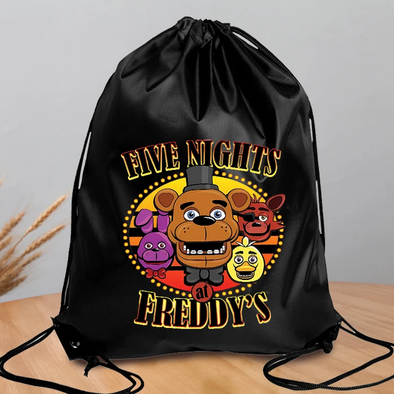 Mochila FNAF de poliéster con cordón, bolso de compras de gran capacidad para cinco noches en Freddy, bolso portátil para natación y Fitness para hombres y mujeres