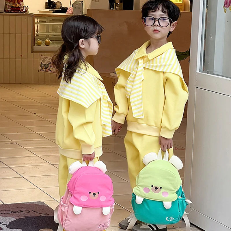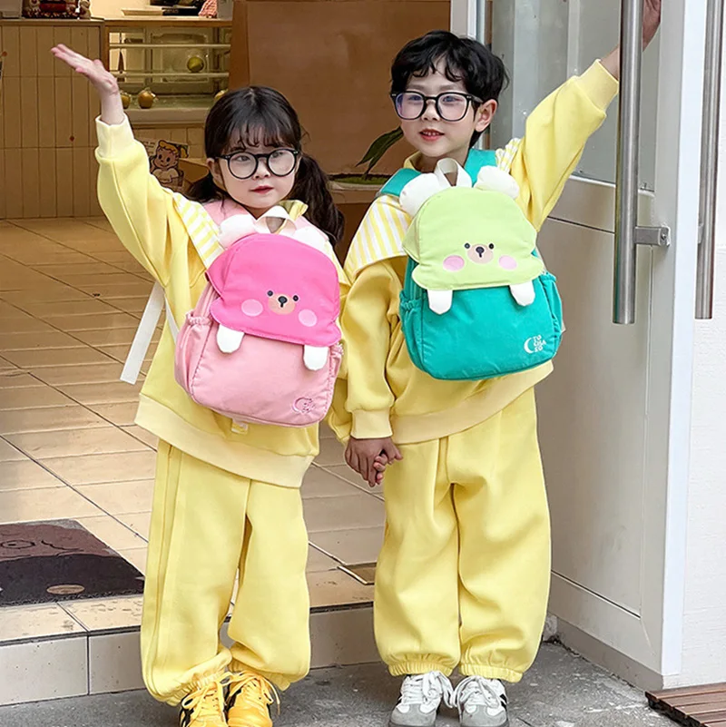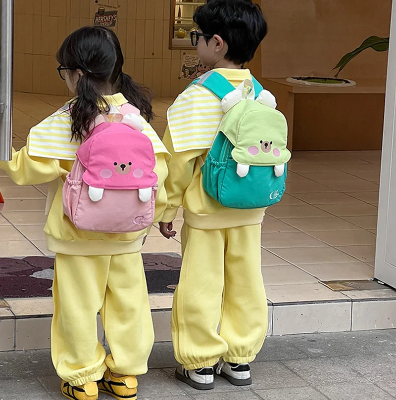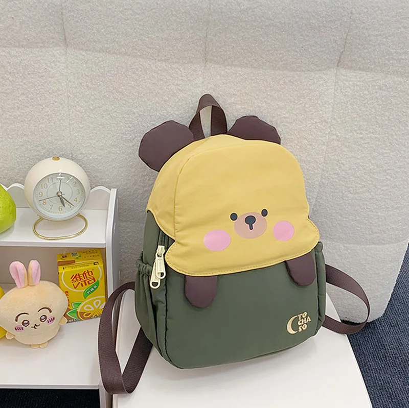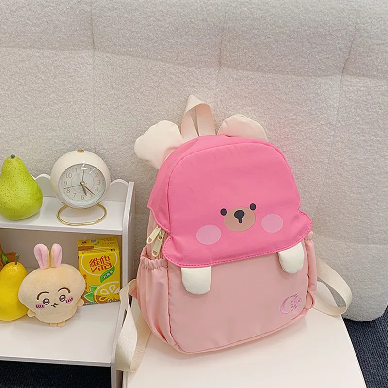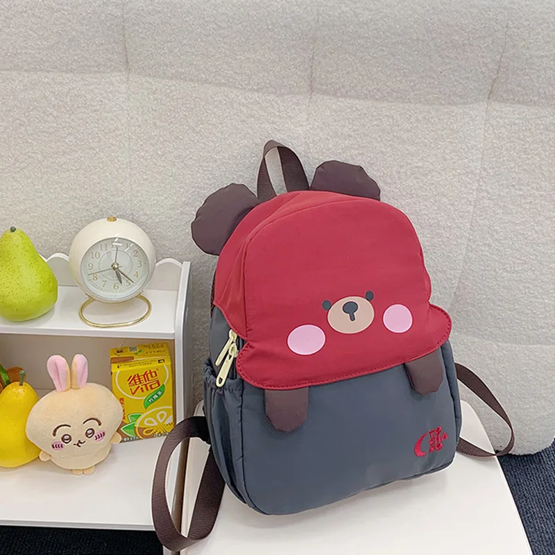 Mochila para guardería de bebé, mochila escolar de nailon con oso de dibujos animados, almacenamiento versátil, bolso de hombro aplicado, lindas mochilas antipérdida para niños