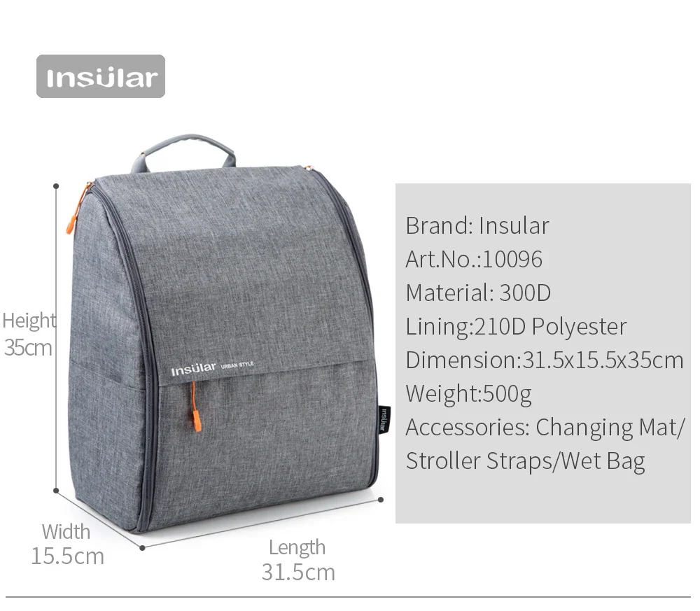 Mochila Insular a la moda para pañales de maternidad, bolsa grande de lactancia, mochila de viaje, bolso de diseñador para cochecito de bebé, bolsa para pañales para el cuidado del bebé
