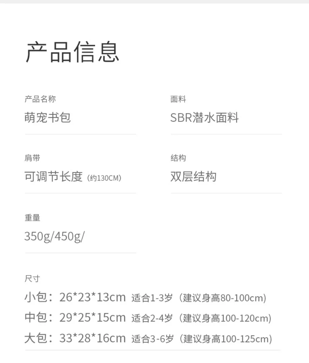 Tamaño pequeño 26x23x13cm adecuado para niños de 1-3 años con una altura de 80-100cm.