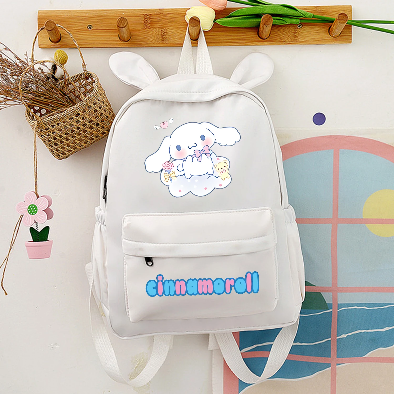 Mochila nueva Cinnamoroll, mochilas escolares con orejas de conejo de dibujos animados, mochila con figura Sanrio para niños, bolsas de gran capacidad para estudiantes, regalo para niños
