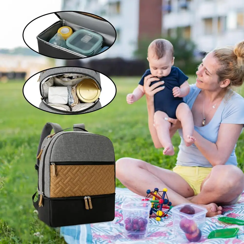 3. Compartimento para alimentos cálidos: esta mochila para pañales tiene una cremallera en la parte inferior que conduce a un gran compartimento aislante.Puede almacenar la comida de su bebé y mantenerla caliente durante mucho tiempo.