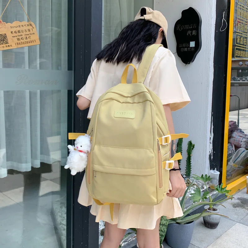 Comprar Mochila simple y versátil para mujer, estilo coreano, estudiantes de secundaria, estudiantes universitarios, mochila escolar de color sólido, envío de bolígrafo