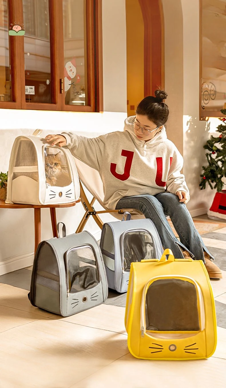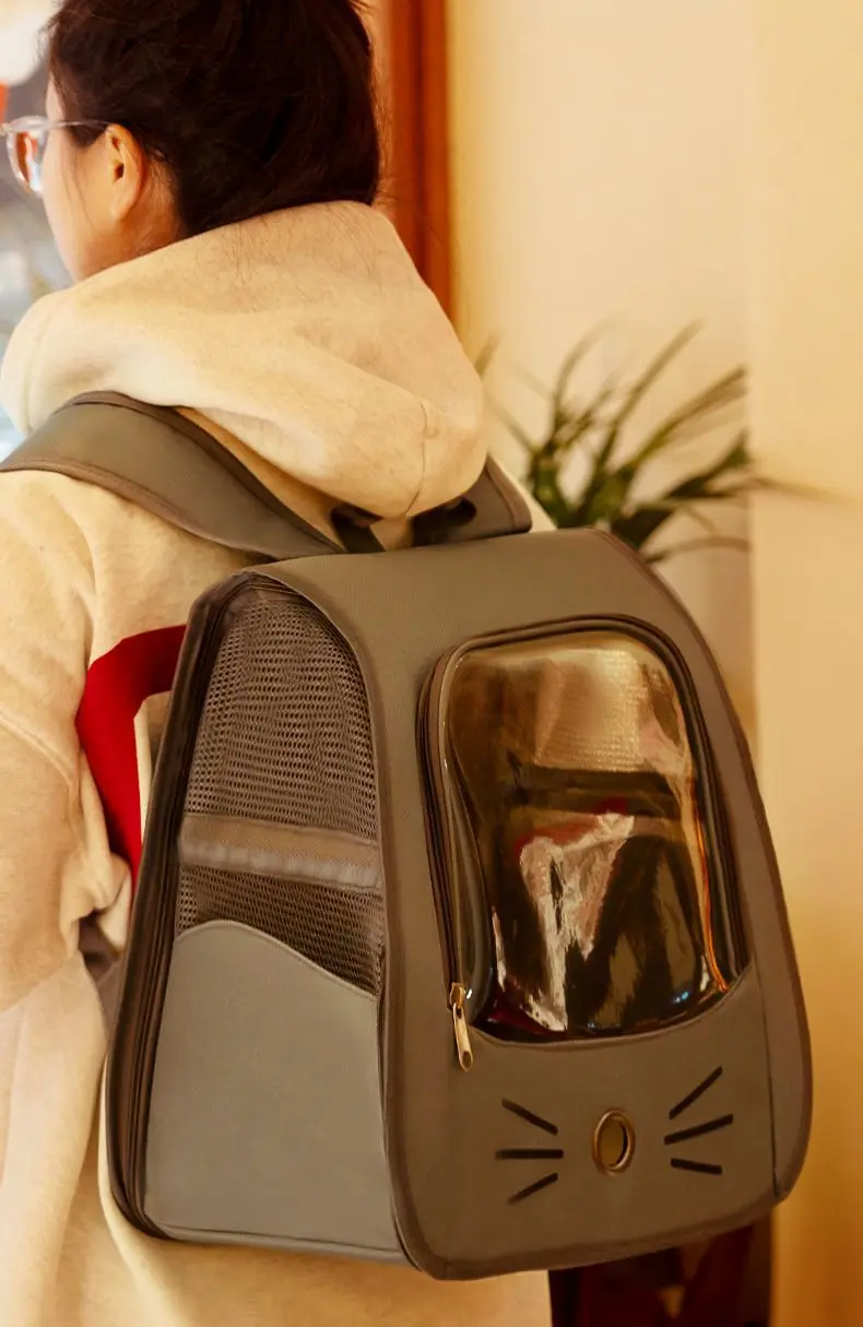 Mochila transportadora de gatos de viaje al aire libre, bolso de hombro portátil transpirable para cachorros y gatitos, suministros de transporte para mascotas con cremallera para perros pequeños