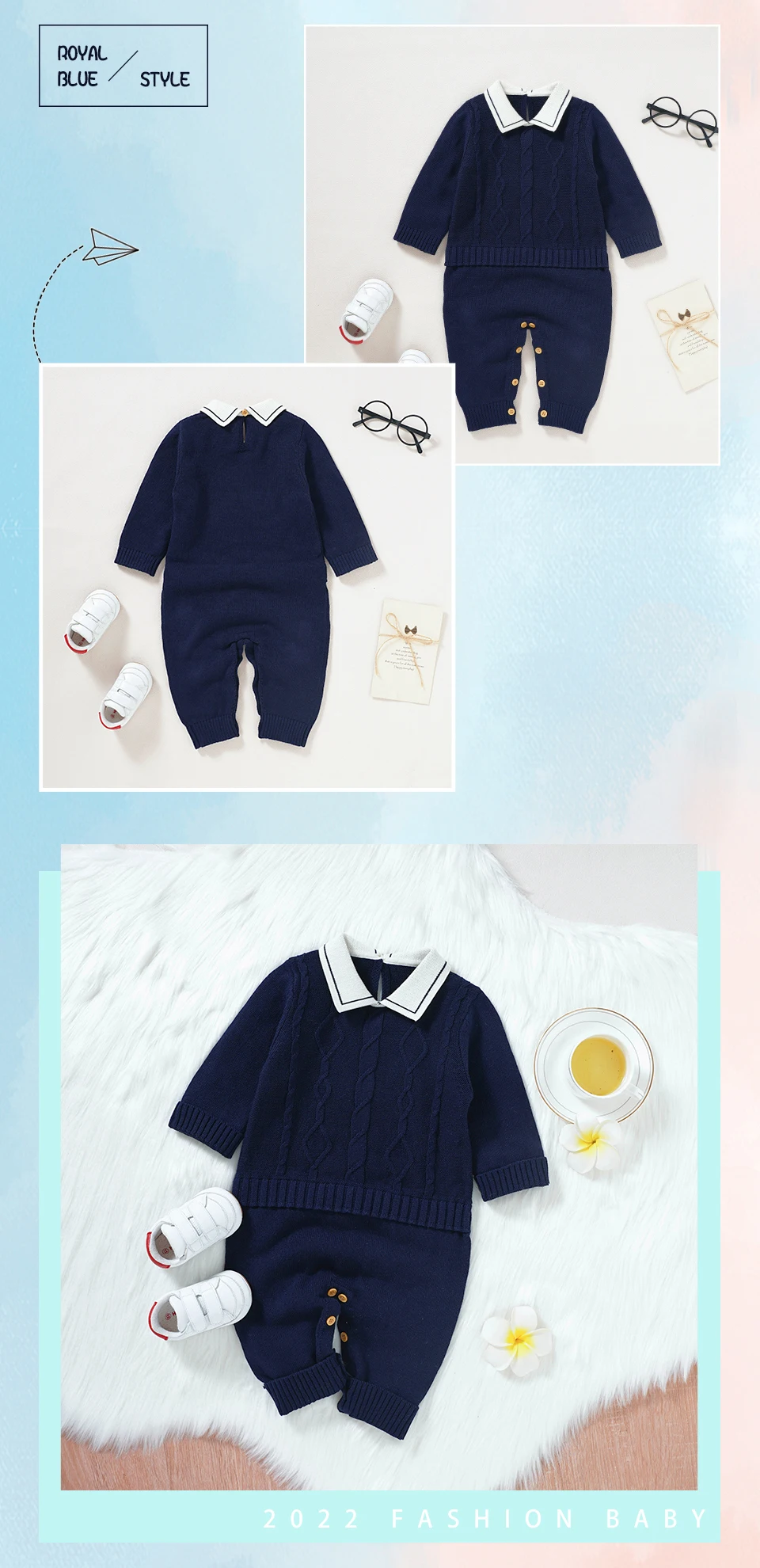Moda bebés niños caballeros estilo mamelucos ropa otoño cuello tortuga mangas largas tejido recién nacido monos de algodón 0-18m