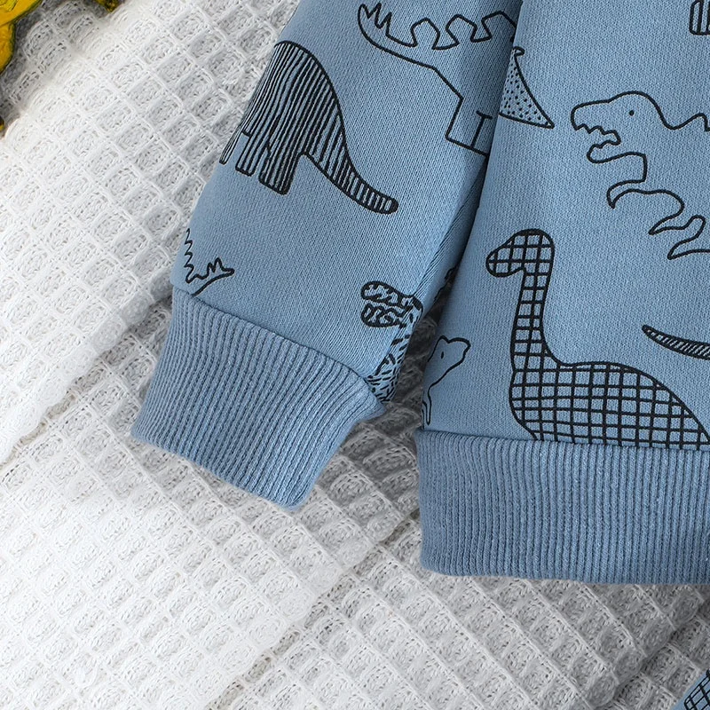 Moda lindo dinosaurio de dibujos animados camiseta de manga larga y pantalones largos traje azul conjunto de ropa infantil para niños ropa de moda para niños