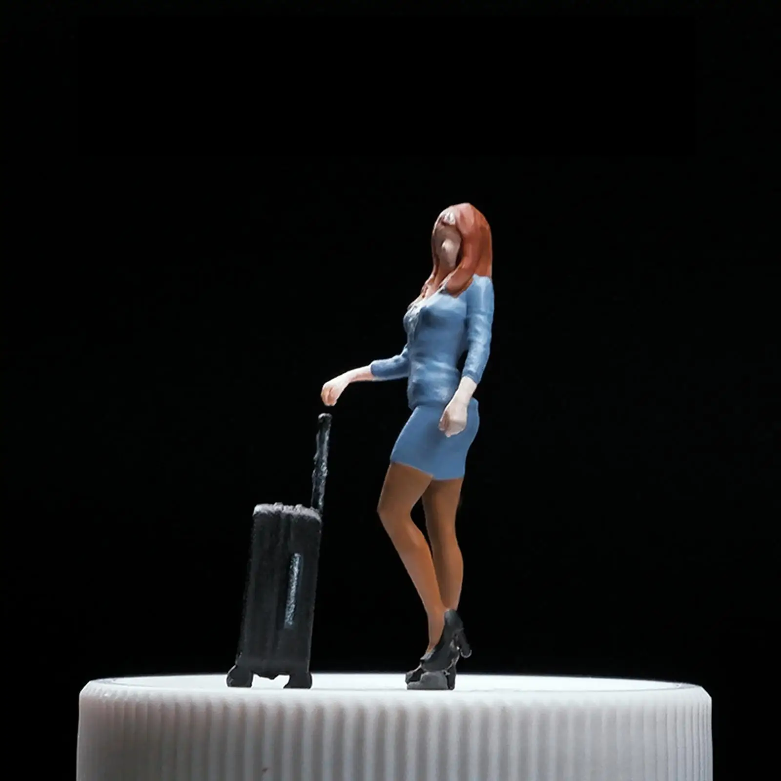 【Escala】: el modelo de azafata con maleta es adecuado para accesorios de escena en miniatura a escala 1:64.