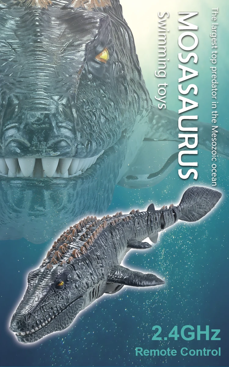 Dinosaurio Rc de 2,4 GHz, modelo Mosasaur, juguete de simulación, barco con Control remoto, aerosol impermeable, juguete para chico y niño, regalo, juego acuático para piscina al aire libre