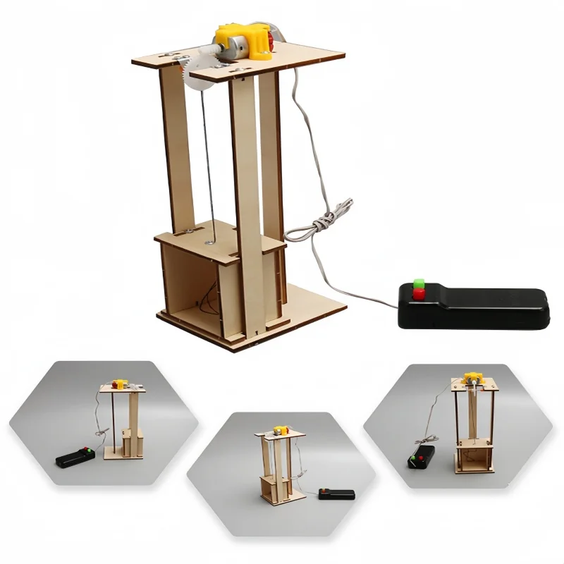 Modelo de elevador de madera para niños, juguete científico, tecnología, material didáctico de física, Kit de ladrillos DIY, juguetes educativos de aprendizaje para niños
