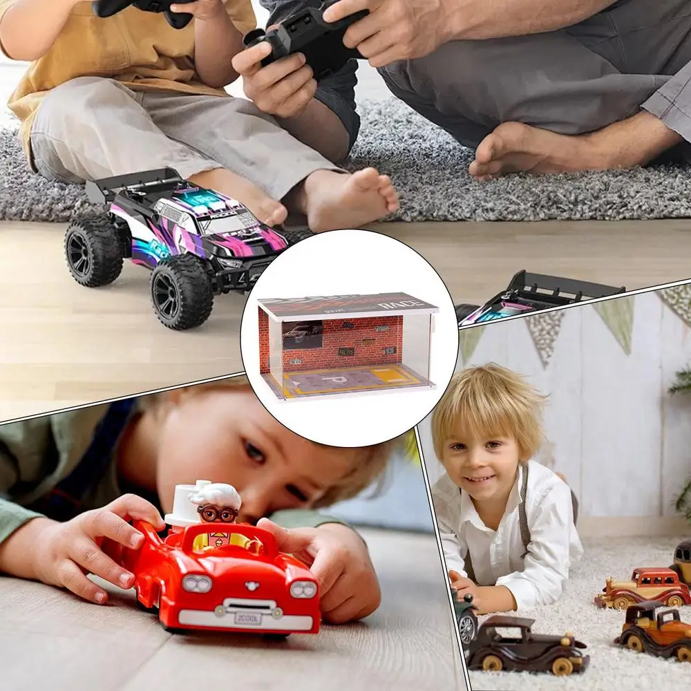 1.Pantalla mejorada: con una cubierta acrílica transparente, nuestro modelo de garaje proporciona una vista sin obstáculos de su modelo de automóvil, presentándolo en todo su esplendor.Además, la funda protege el coche del polvo y otros contaminantes.