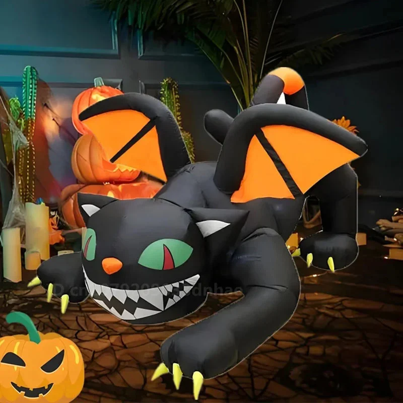 Comprar Modelo inflable de gato negro para decoración de Halloween, juguetes inflables para exteriores con luces LED, decoración de jardín y patio para el hogar, 1,8 M/6 pies