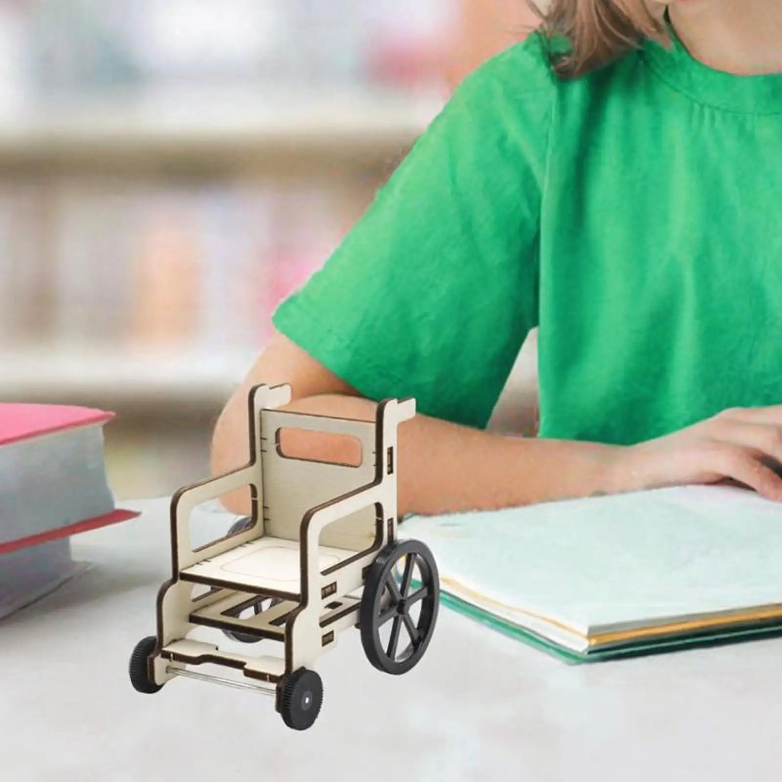 Comprar Modelo de silla de ruedas científica, casa de muñecas en miniatura, pequeño rompecabezas creativo, Kit de construcción, juguete educativo de madera para niños, juguete de montaje DIY