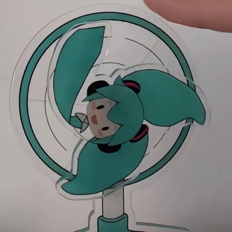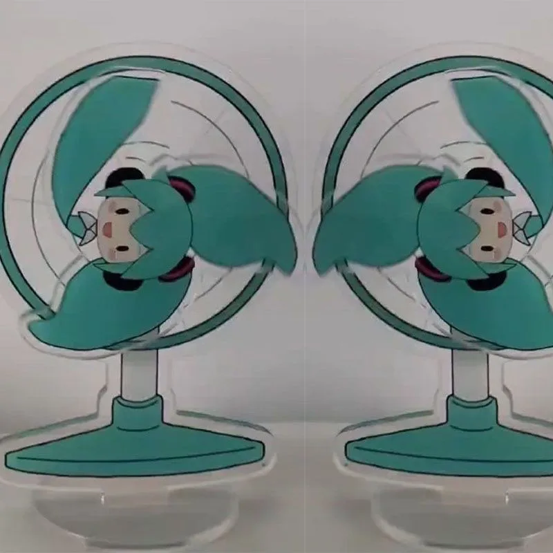 Comprar Modelo de soporte Hatsune Miku, ventilador acrílico creativo, letrero giratorio, modelo de decoración de escritorio, accesorios de regalos de Cosplay de Anime de pie