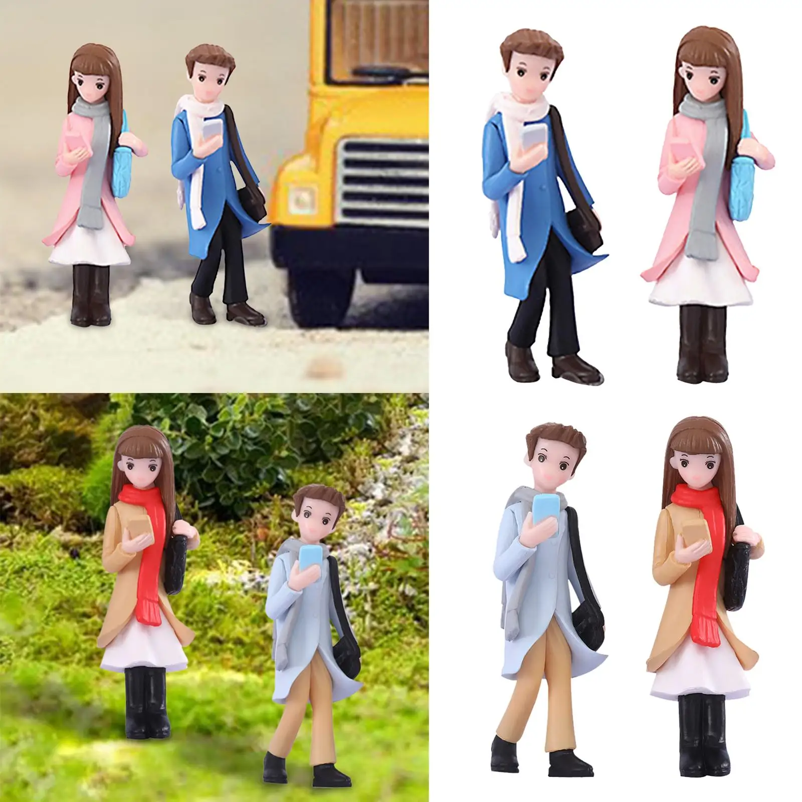 Comprar Modelo de teléfono para pareja de personas pequeñas, trenes, figuras de personas para casa de muñecas, escena en miniatura, accesorios de fotografía, decoración Diorama