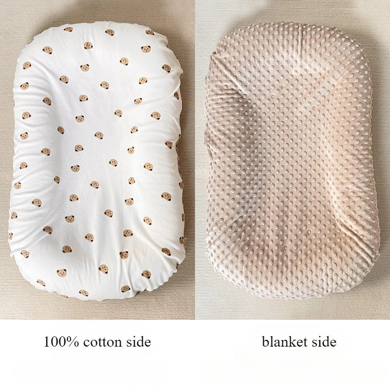 Cuna infantil para recién nacido, nido para cama, cambiador de pañales para bebé, 2 lados, funda suave y transpirable 100% algodón Tamaño: 80*50cm Lado 1.100% algodón/lado de manta 100% minky 2. Esta almohada para tumbona infantil ayudará a que su bebé esté fresco en primavera pero también abrigado en otoño e invierno con su funda de diseño de 2 lados.¡Esta tumbona portátil para bebé es perfecta para todas las estaciones! 3. Diseño de cremallera, extraíble y lavable.