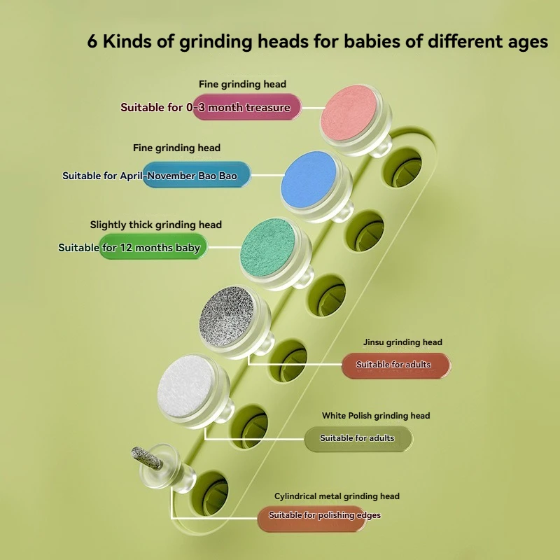 Molinillo de uñas eléctrico para bebés, recargable, seguro y silencioso, 7 cabezales de molienda, para recién nacidos y bebés, herramienta suave para el cuidado de las uñas