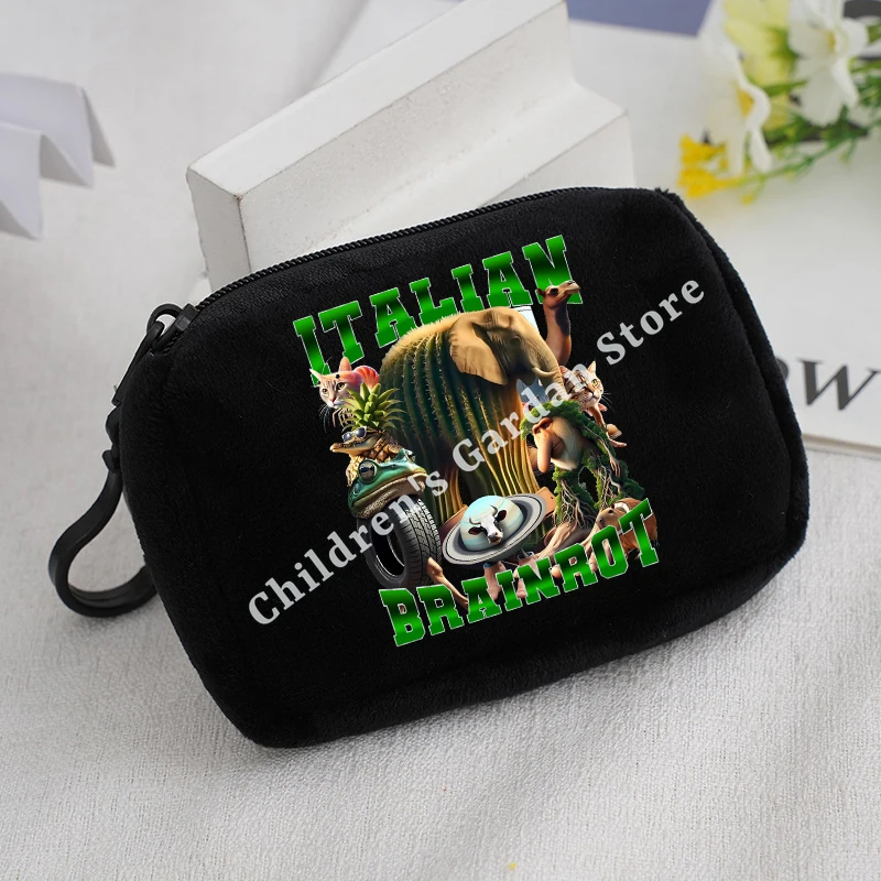Monedero de felpa italiano Brainrot para niños, billetera portátil Tung Tung Sahur Telala, bolsa de almacenamiento de tiburón divertida, regalos para niños