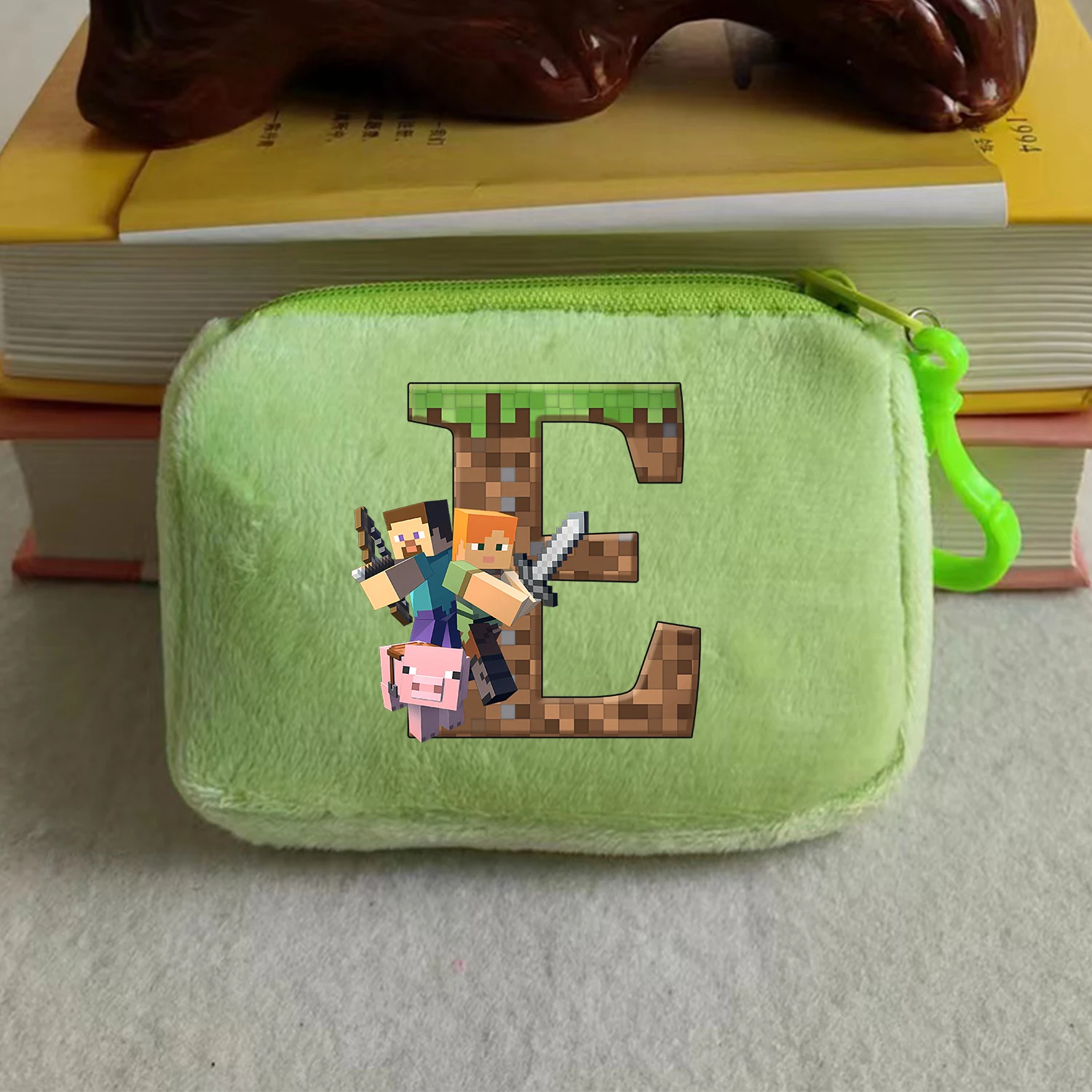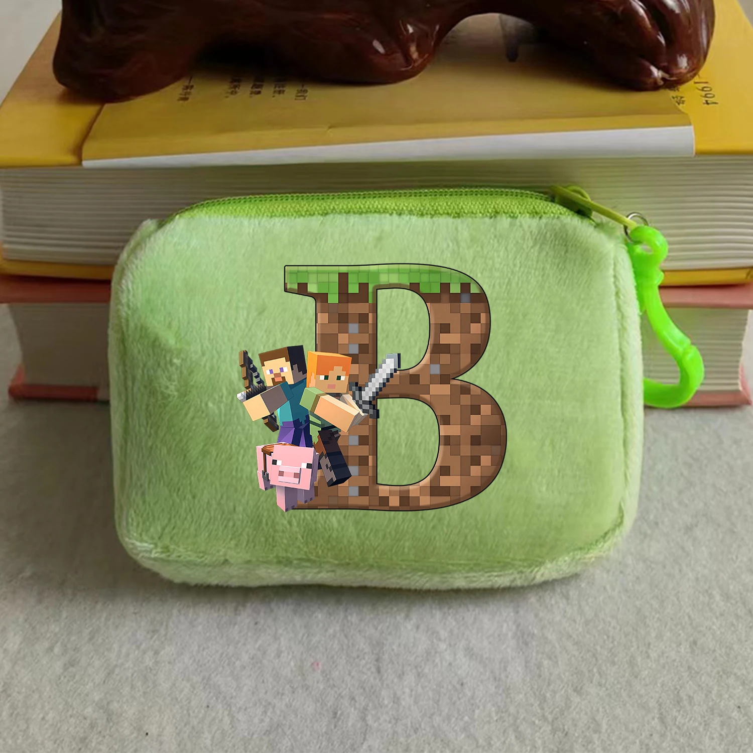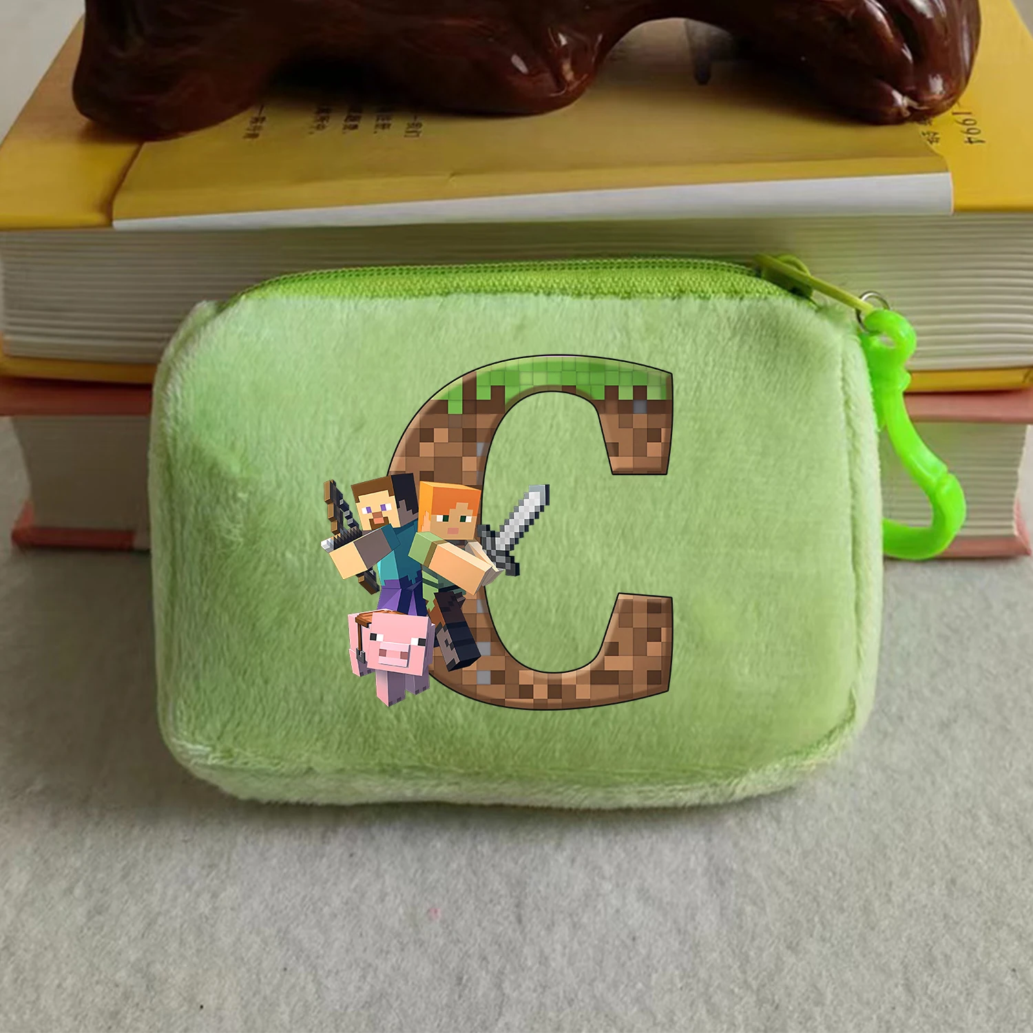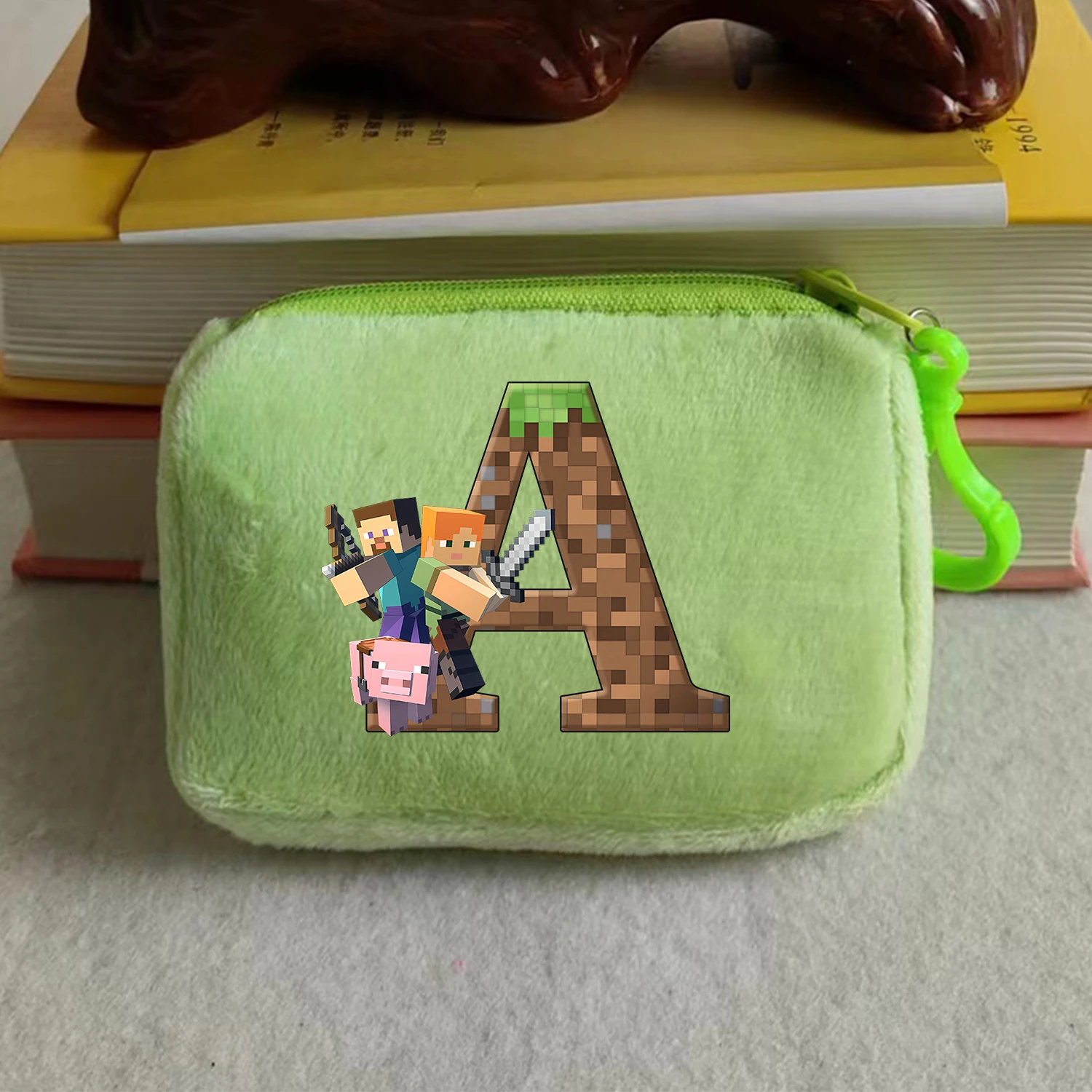 Comprar Monedero de felpa de juego de píxeles, Mini billetera con letras de A-Z de dibujos animados, monedero con cremallera Kawaii, bolsas de almacenamiento de tarjetas de dinero verdes, regalo para niños