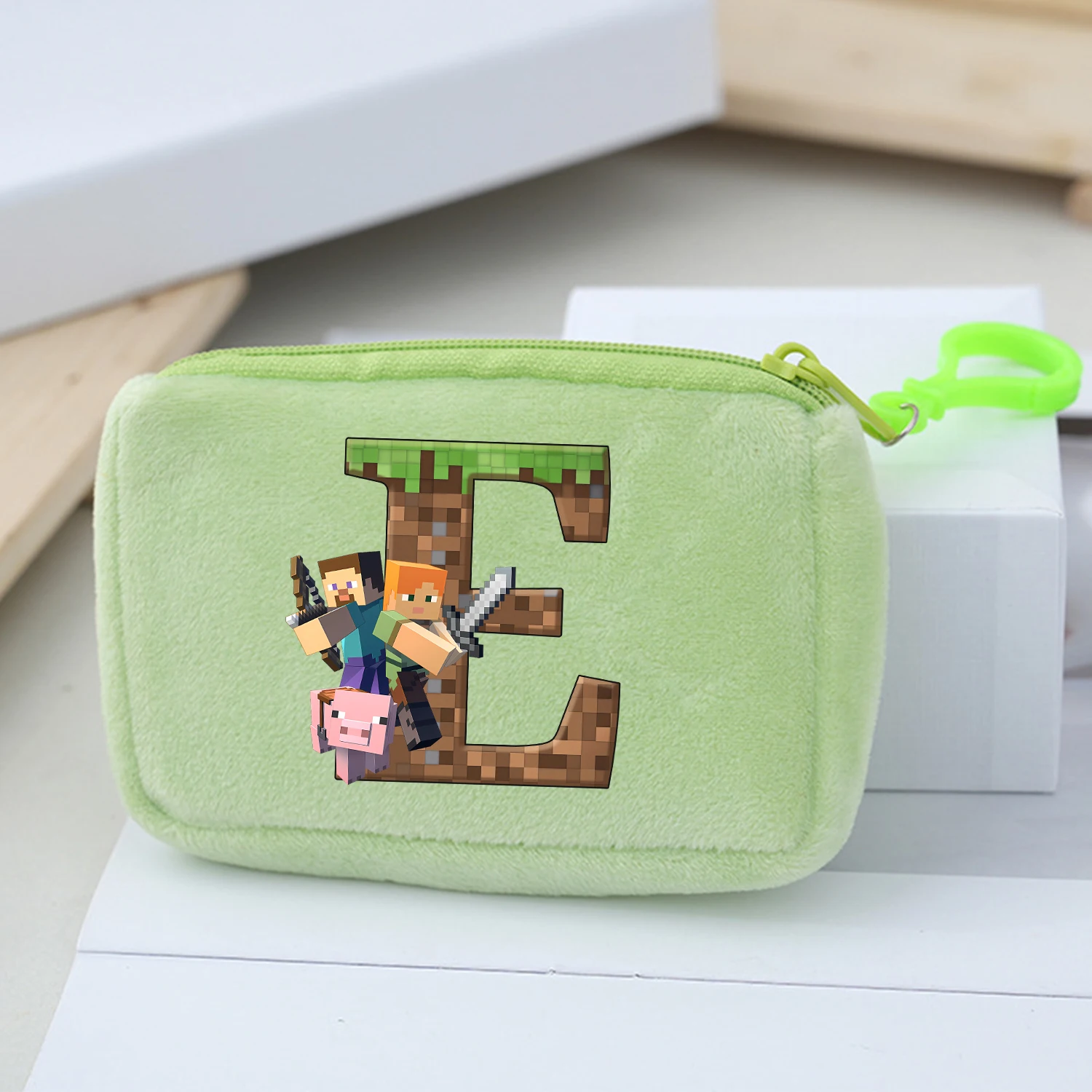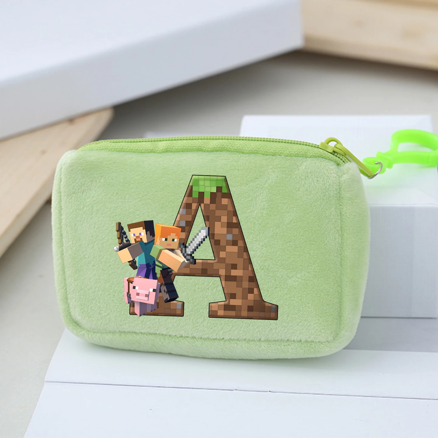 Comprar Monedero de felpa de juego de píxeles, Mini billetera con letras de A-Z de dibujos animados, monedero con cremallera Kawaii, bolsas de almacenamiento de tarjetas de dinero verdes, regalo para niños