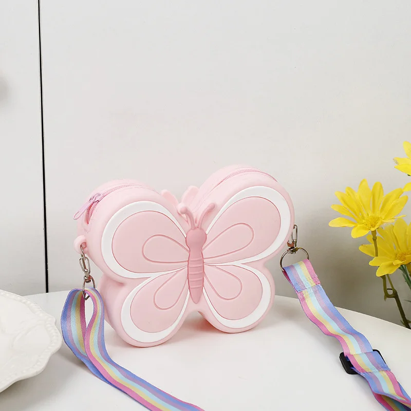 - Material: Este Lindo bolso cruzado de mariposa está hecho de silicona de alta calidad. No es tóxico y es seguro. Es suave y resistente al agua y al agua.